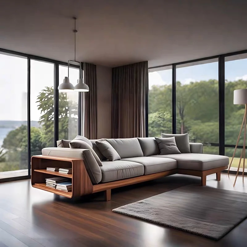 2025年新作!新中式実木ソファ - シンプルでモダンなL字型、リビングにぴったりの中古くるみ材ソファ。快適さとスタイルを兼ね備えた一品をお見逃しなく!