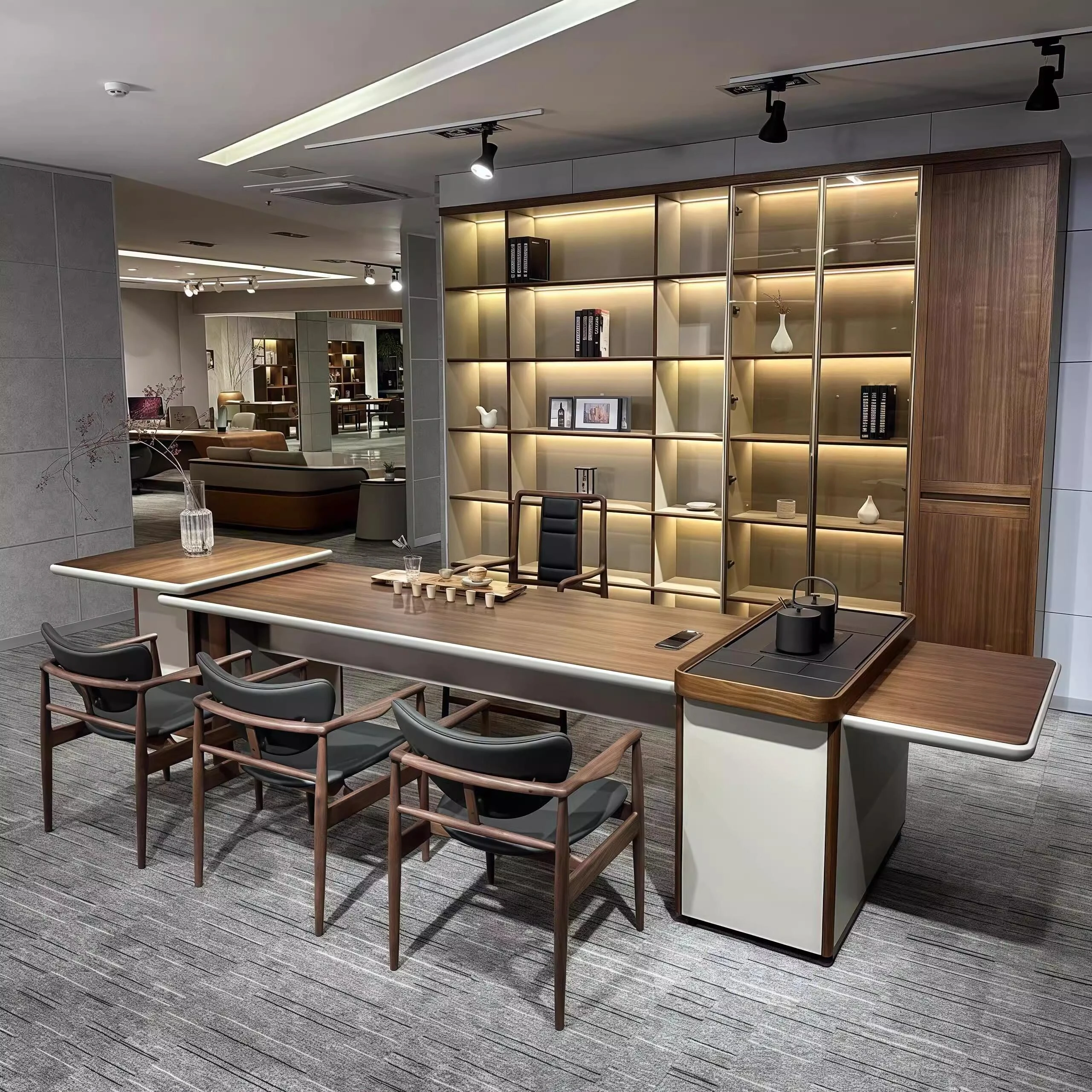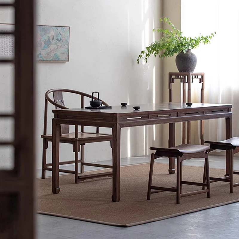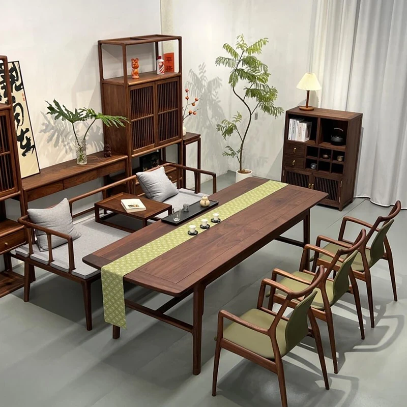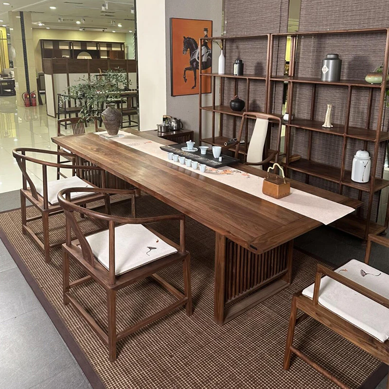 2025年新作!高級感あふれる新中式胡桃木製テーブル - オフィスや家庭で使える実木の茶卓、優雅なティータイムをお楽しみください!