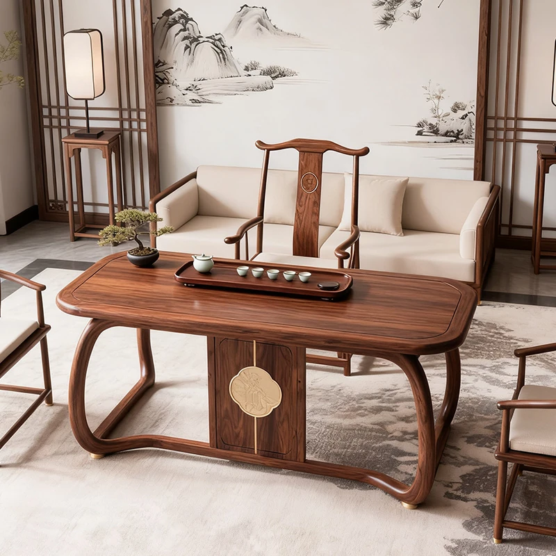 新中式高級天然木製ティーテーブル|モダンシンプルデザインで心を癒す禅の空間|ウォールナット材使用の高品質ティーテーブルを家庭のリビングに最適!
