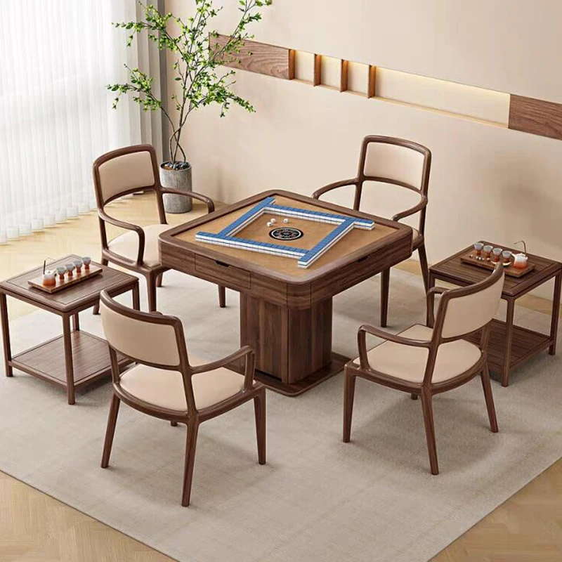 新中式デザイン!多機能実木茶卓&ダイニングテーブル - ウォールナット材使用、オフィスやリビングに最適なティータイムを演出!家庭用にもぴったりなスタイリッシュな泡茶テーブル。