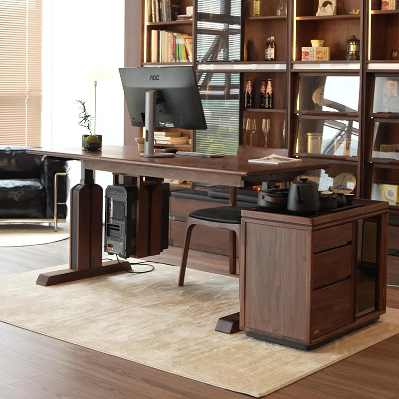 2025年新款!新中式实木書桌 - モダンでシンプルなデザイン、ウォールナットの高級感あふれるオフィス用パソコンデスク。リビングにも最適!洗練された空間を演出します。