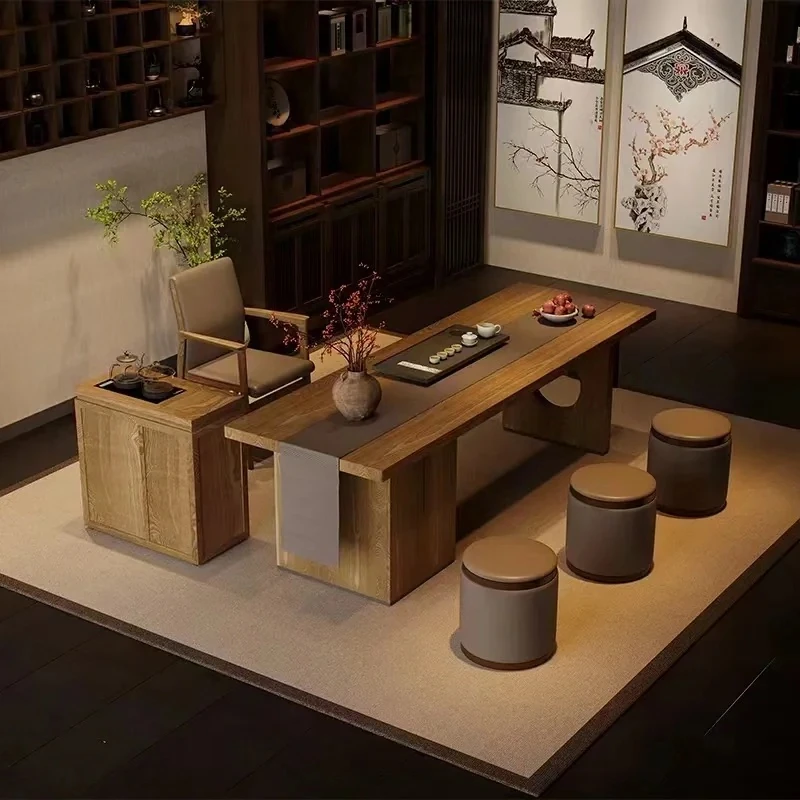 2025年新作!新中式実木茶卓 - 家庭用胡桃木オフィス茶台、現代的な禅の雰囲気を楽しめるおしゃれな泡茶卓!心安らぐひとときを演出します。