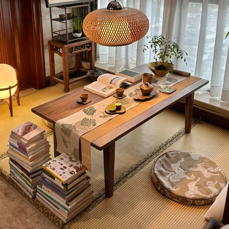 新中式デザインの高級胡桃木製書桌兼用茶桌 - 2025年最新モデル、シンプルで洗練されたリビングにぴったりの多機能茶台!