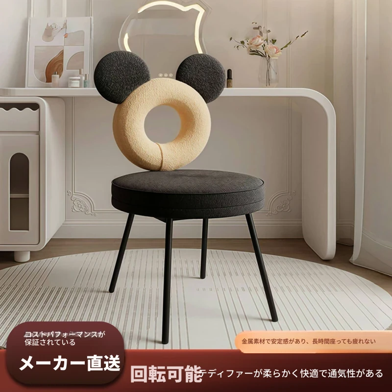 人気のミッキーマウス化粧椅子!おしゃれで高級感溢れるクリーム風デザイン。小スペースにもぴったりなネイル用スツールやドレッサーとしても最適です。あなたの部屋をもっと魅力的に!