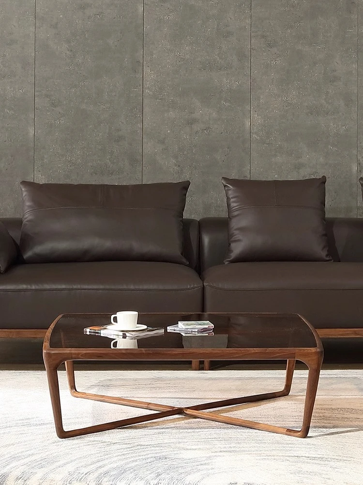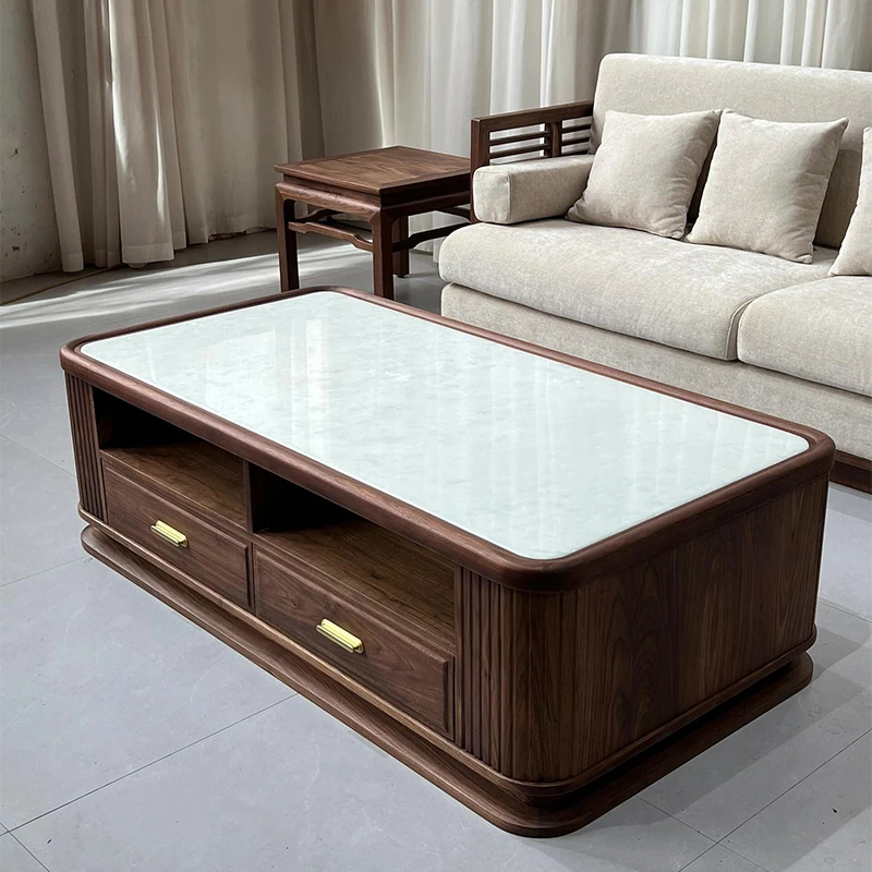 新中式スタイルのシンプルなウォールナット製コーヒーテーブル - ラグジュアリーな別荘のリビングにぴったりの実木製長方形テーブル。窓際での特別なひとときを演出します。