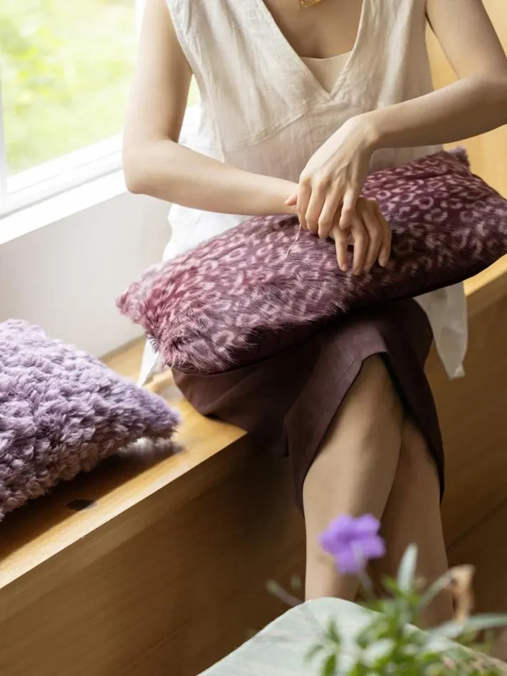 若奈 北米限定新色!天然ソフトゴールドスキン一体型ガロンパープルヒョウ柄ウールクッション・抱き枕で、快適なリラックスタイムをお楽しみください!