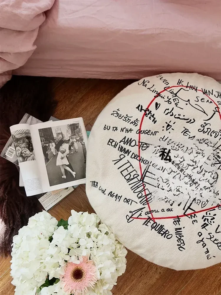 若奈の新作!フランスシルク級のピュアフラックスリネン大クッション、芯付きで寝室を華やかに演出!心地よい抱きしめ感でリラックス空間を実現!