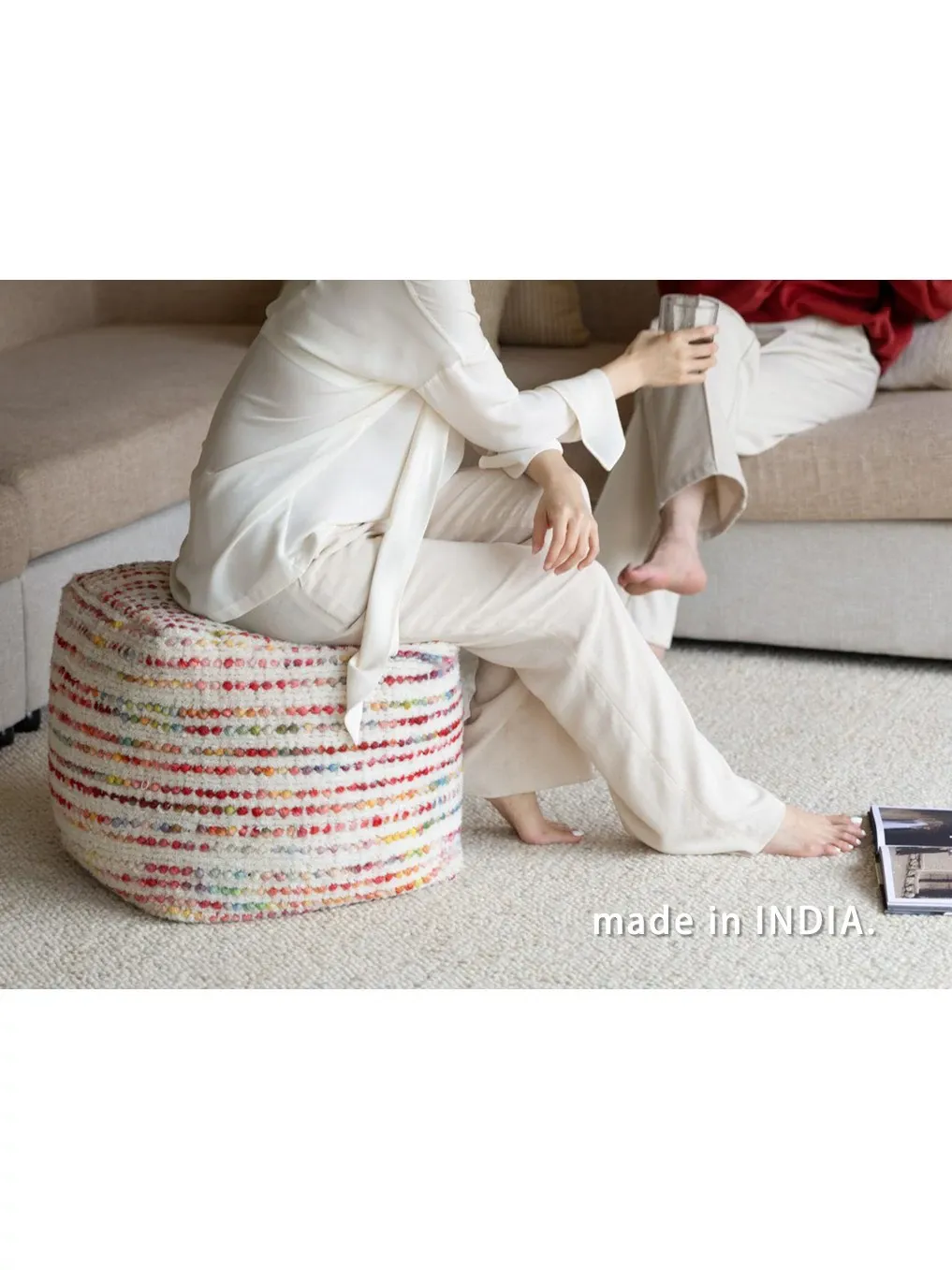 若奈 インド手織り!%ニュージーランドウール使用のカラフルなポップコーンデザイン、リビングルーム用スツール&玄関マット、染色仕上げでおしゃれな空間を演出!