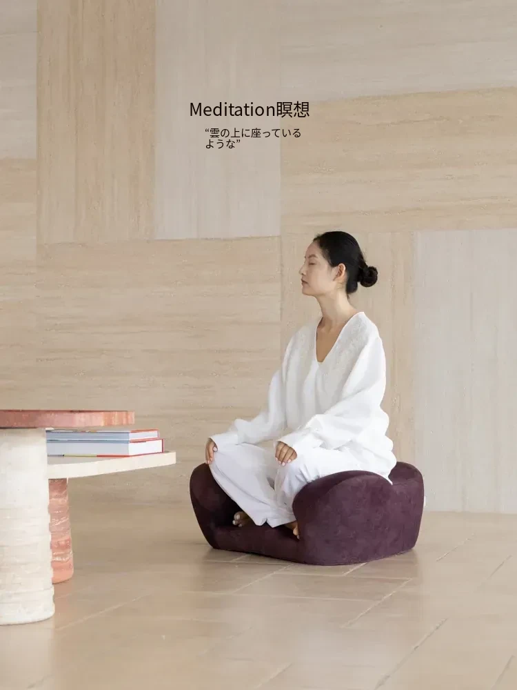 若奈の「小元宝」海葵紫色メディテーションスツール - 高反発ウレタン製、快適な座り心地でリラックス!和室やリビングにぴったりなタタミスタイルのソファチェア。
