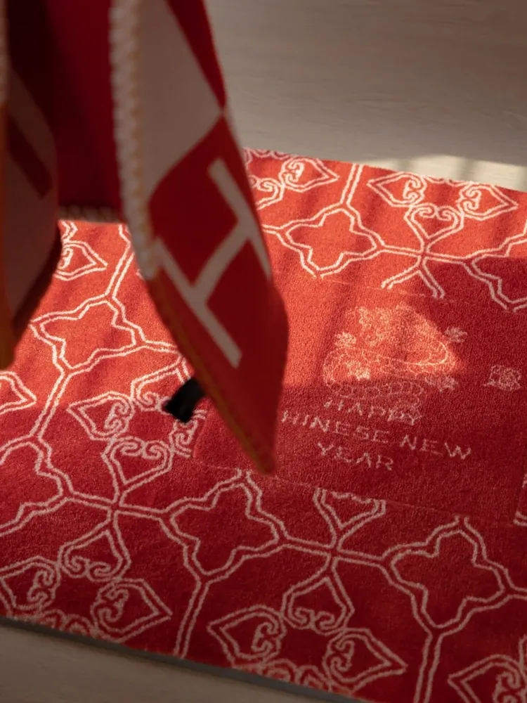 カーティエ侍童シリーズ「ボヤージュ」インスパイアの若奈ラグマット - 新年を祝う鮮やかな赤で、玄関を華やかに演出!おしゃれでエレガントな雰囲気をプラスし、訪れる人々を魅了します。