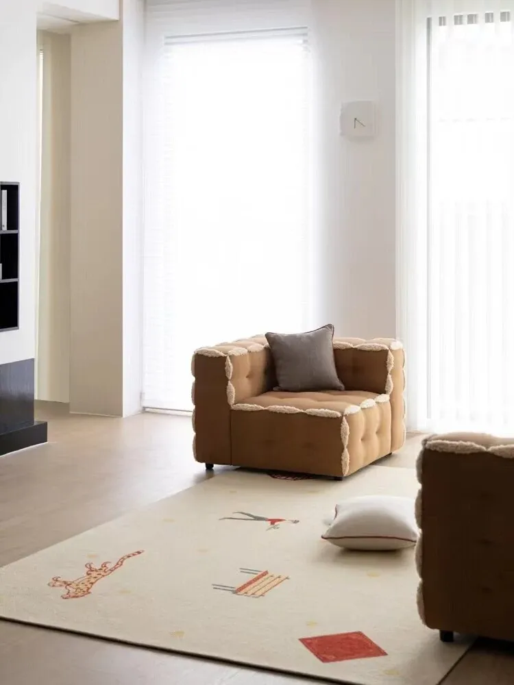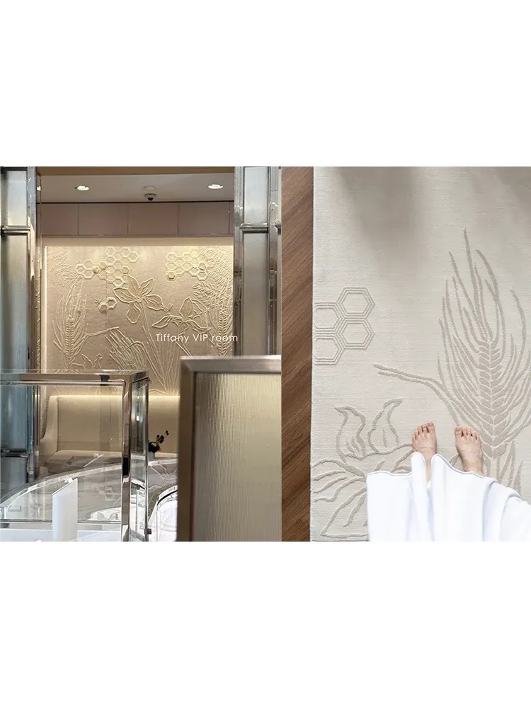 若奈ピュアナチュラル四季藻シルク防水ミルククリーム風立体浮彫カーペット - リビングや寝室に最適な高級感溢れるデザインで、快適さと美しさを両立!