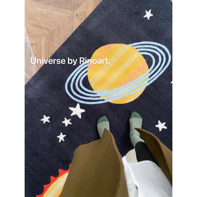 若奈 深藍の惑星カーペット - Universeトレンドブランド、リビングルームや書斎に最適!子供部屋やゲームルームにもぴったりなベッドサイドカーペット!心地よいデザインで、空間を華やかに彩ります。