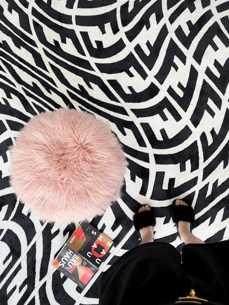 驚きの美しさ!若奈立体ダブルF黒白ヴィンテージラグ「時空の歪み」リビングソファやクローゼットにぴったりのマット