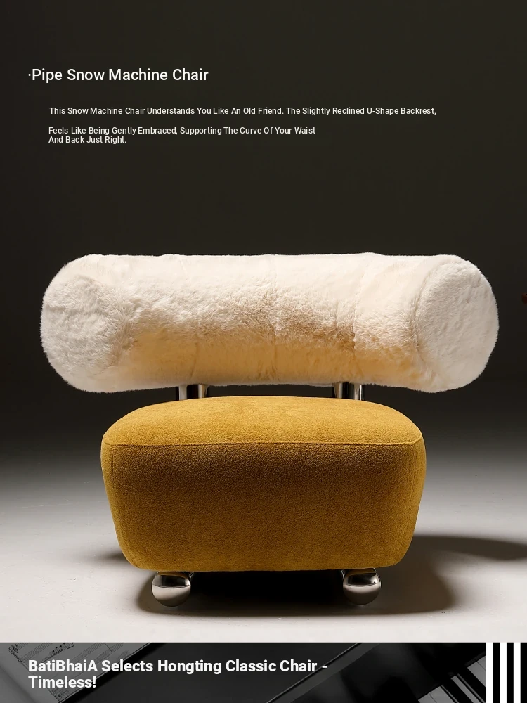 Nordic Creamy Style Leisure Chair - Unique Lamb Wool Fabric Sofa Chair for Living Room & Bedroom, Perfect for Makeup and Cozy Relaxation