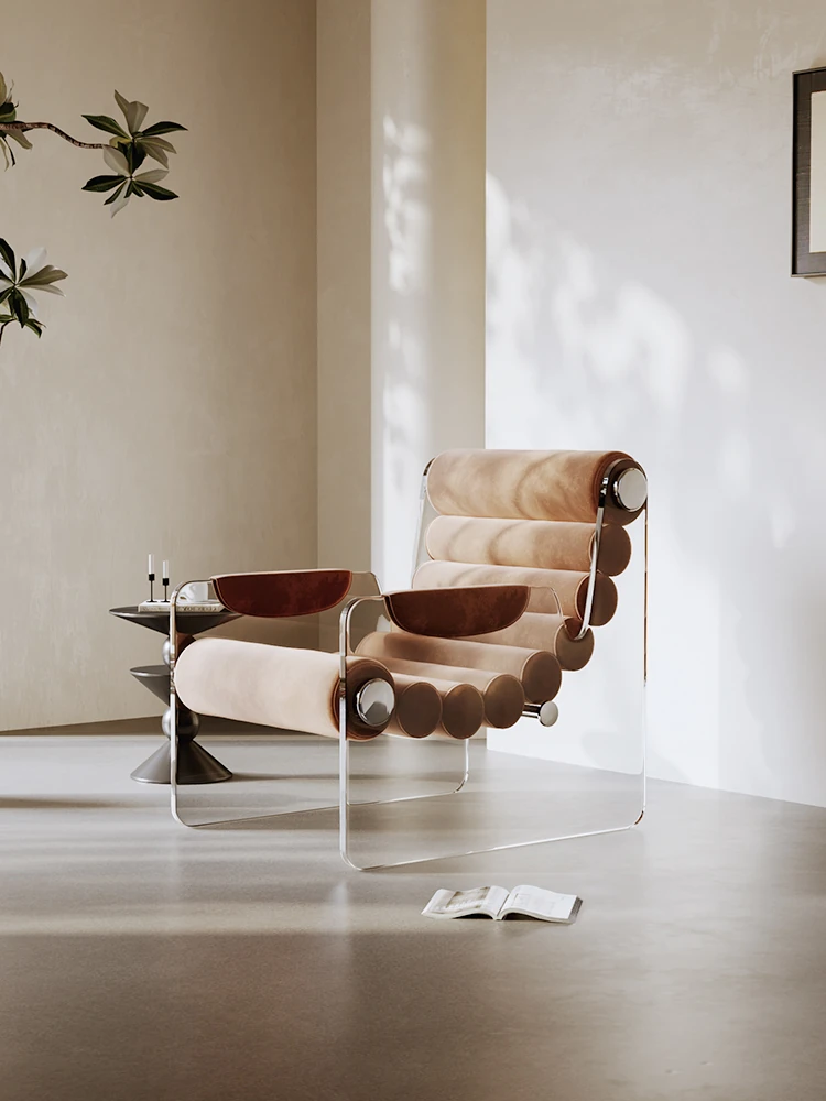Modern Minimalist Designer Acrylic Lounge Chair - Elegant Floating Design for Villas, Hotels, and Clubs - Perfect Single Sofa for Stylish Living Spaces
