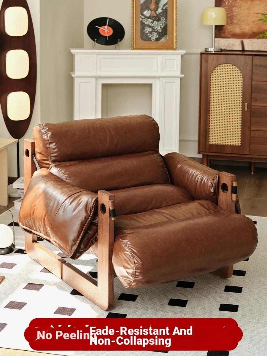 Vintage Jersey Island Chair – Cozy Single Recliner Sofa for Balcony, Living Room & Lazy Lounging – Ergonomic Design with Solid Wood & Genuine Leather for Ultimate Comfort