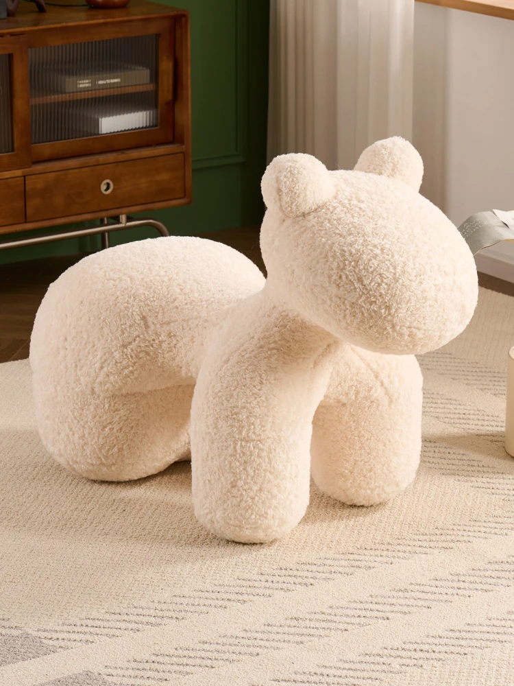 Cozy Lamb Fleece Pony Chair - Trendy Plush Animal-Shaped Sofa for Home, Creative Kids' Stool for Living Room, Perfect for Playtime and Decor!