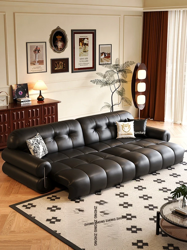 French Vintage Black Sugar Cloud Electric Leather Sofa with Remote-Controlled Stretch Feature - Designer Sofa Bed for Modern Living Rooms