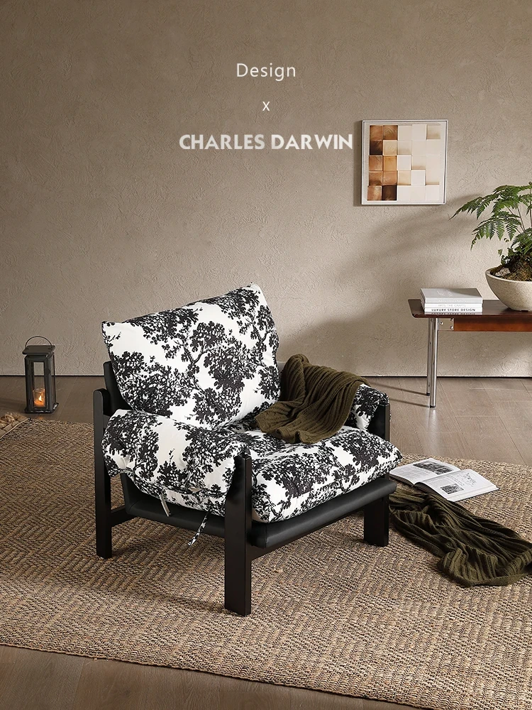 Darwin Timill Thick Milk Leisure Chair - Retro Solid Wood Fabric Armchair for Living Room, Removable and Washable, Perfect for Home Use