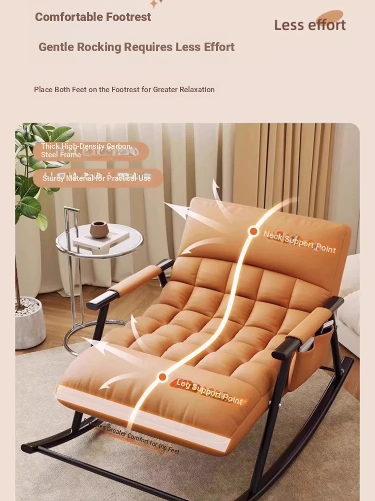 Adjustable Lazy Recliner Chair for Adults - Perfect for Balcony, Living Room, and Leisure Time. Comfortable Rocking Chair for Afternoon Naps and Trendy Home Decor.