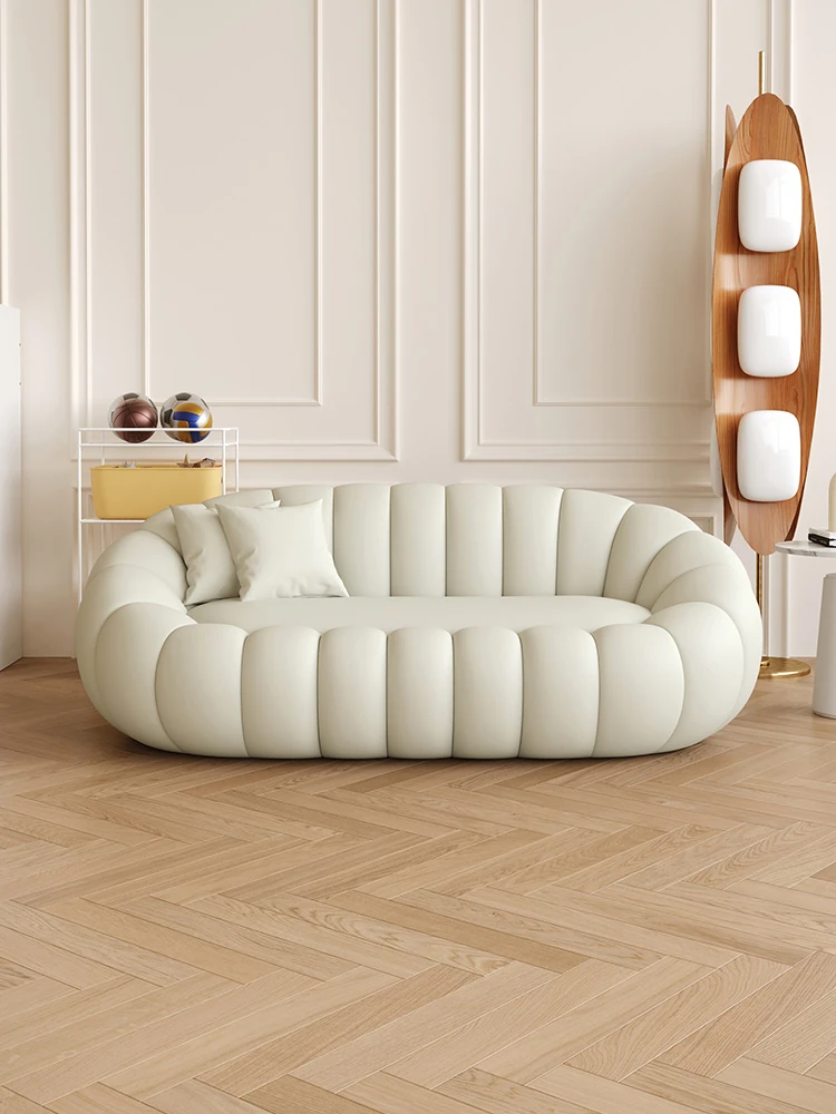 Cozy Pumpkin Sofa for Beauty Salons and Apartments - Stylish Reception Seating for Trendy Clothing Stores and Guesthouses, Cat Scratch Resistant, Perfect for Couples and Small Groups