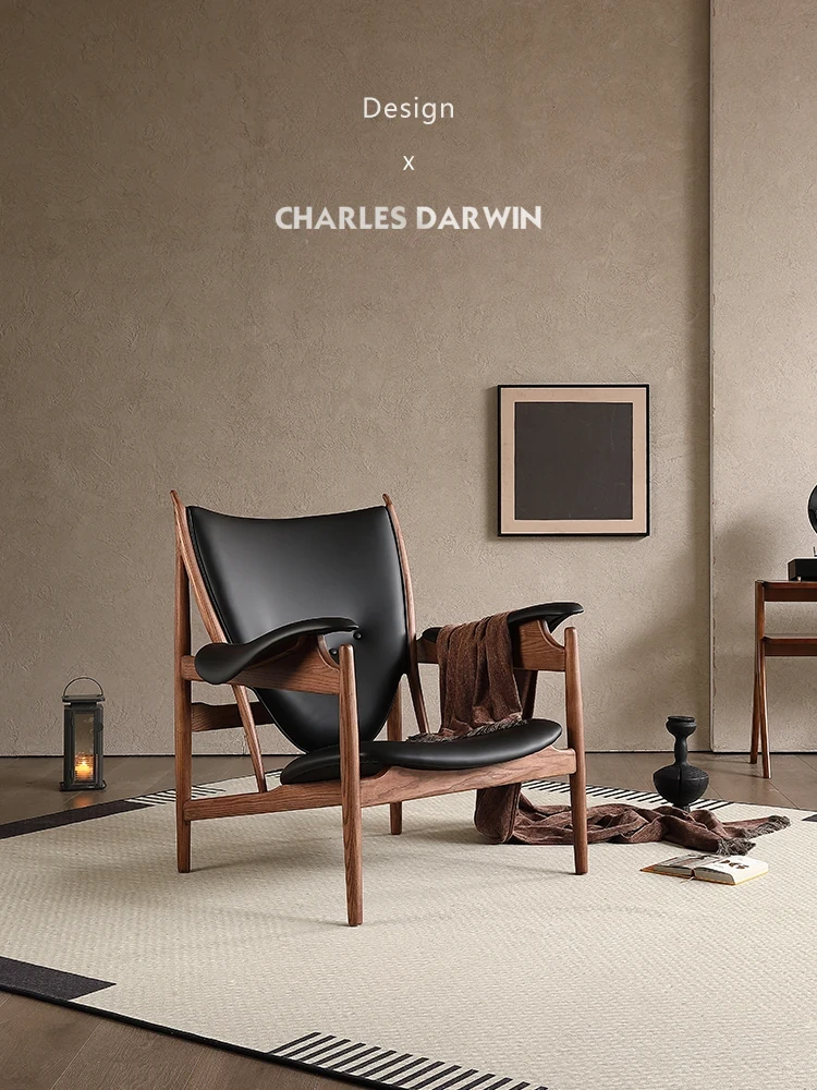 Darwin Chieftain Armchair - Exquisite Wabi-Sabi Style Solid Ash Wood & Genuine Leather Single Sofa Chair for Relaxation