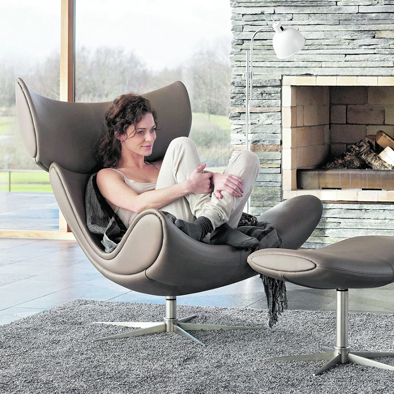 Designer Minimalist Lounge Chair - Creative Rotating Italian Genuine Leather Tiger Chair - Luxurious Single Sofa for Modern Living Room