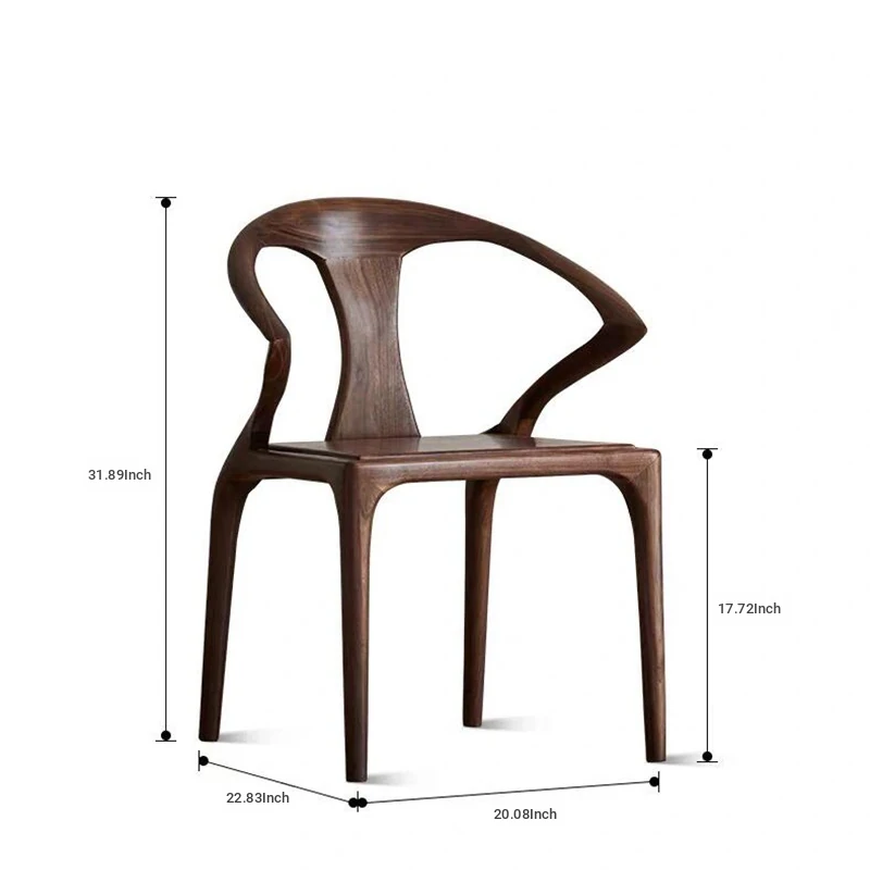 Modern Chinese Style Black Walnut Backrest Chair - Minimalist Solid Wood Dining Chair for Study, Elegant High-End Tea Chair with Luxurious Feel