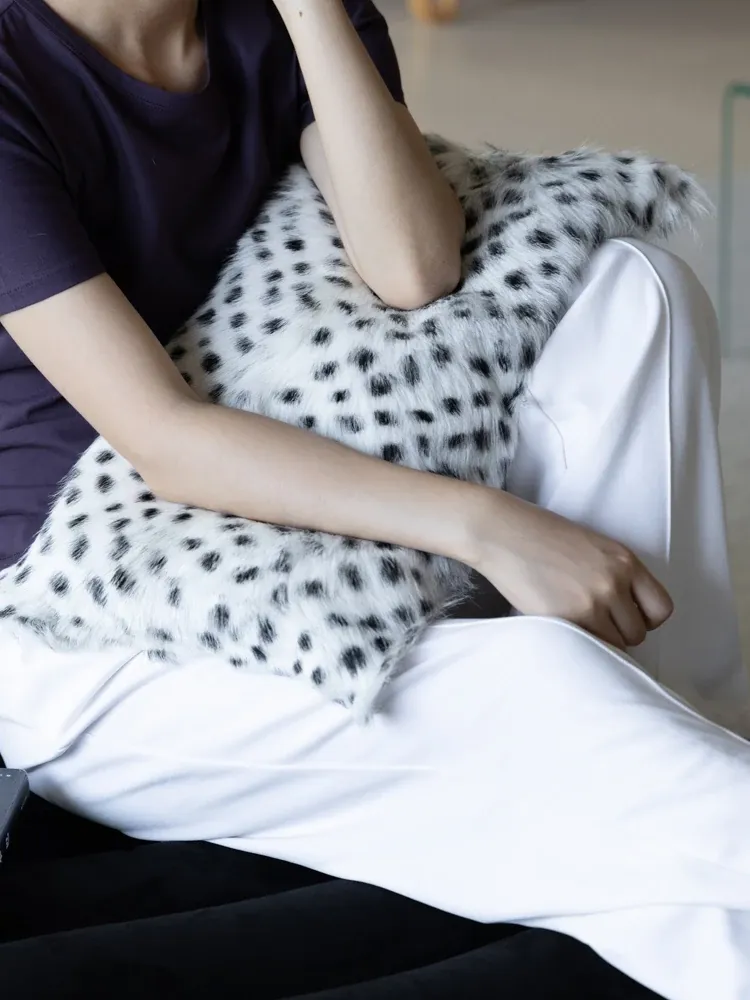 Rona Genuine Leather & Sheepskin Vintage Spot-Patterned Waist Pillow - Perfect for Sofa or Bedhead Support