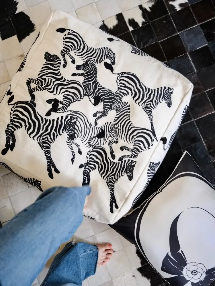 Ruonai Vintage Black and White Zebra Embroidered Pearl Color Ottoman - Stylish Removable Lazy Sofa for Living Room, Perfect for Home Use and Trending on Social Media!