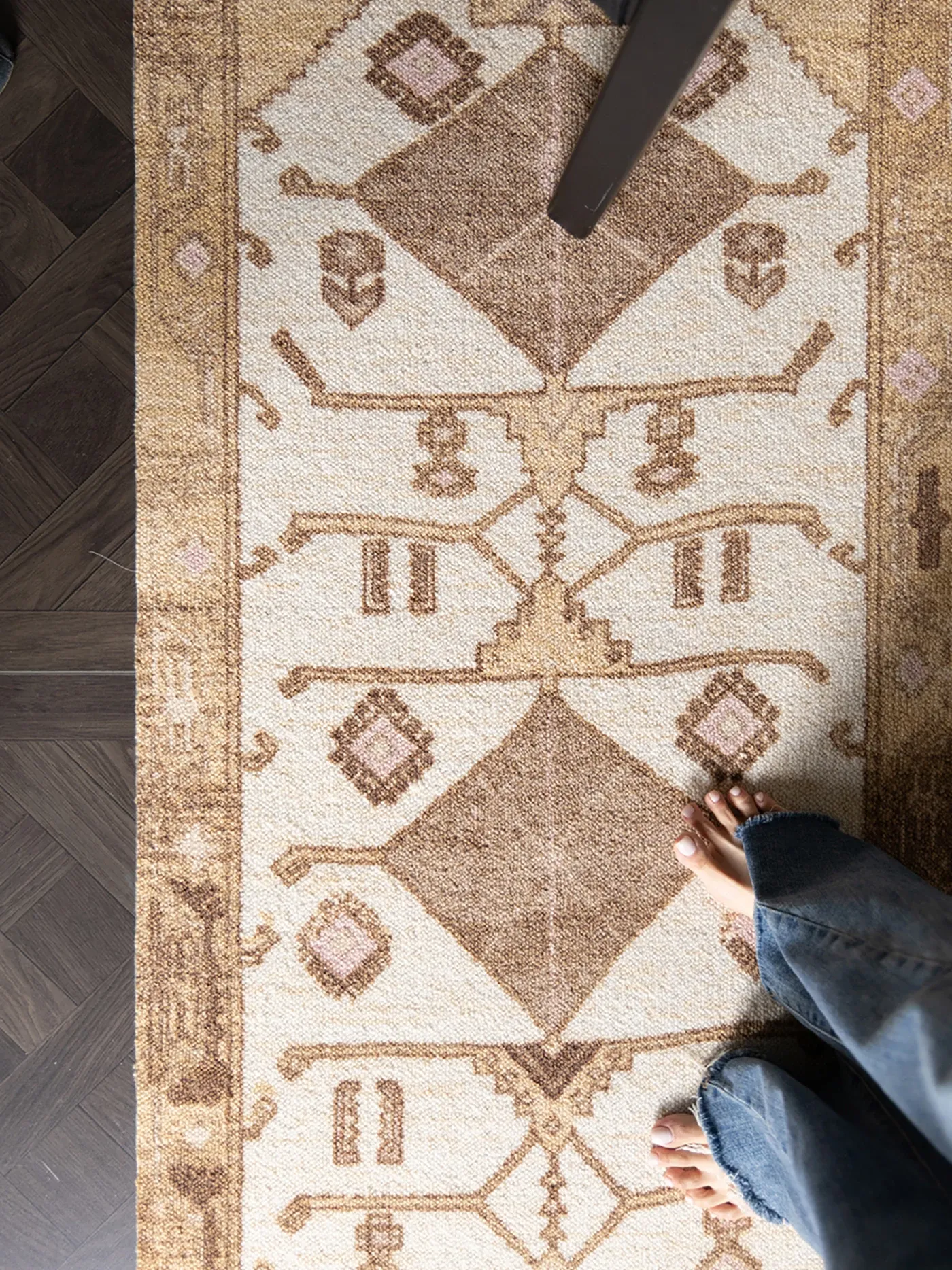 Rona Turkish-Inspired Vintage Long Carpet - Imported New Zealand Wool for Yoga, Bedroom, and Kitchen Decor