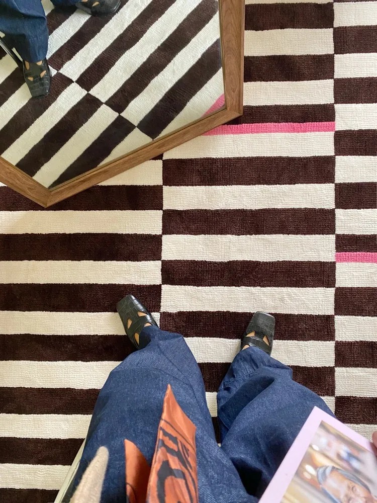 "Rona Chic Vintage Carpet - Bauhaus Striped Minimalist Rug in Ebony Color for Modern Living Rooms, Non-Black & White Design"