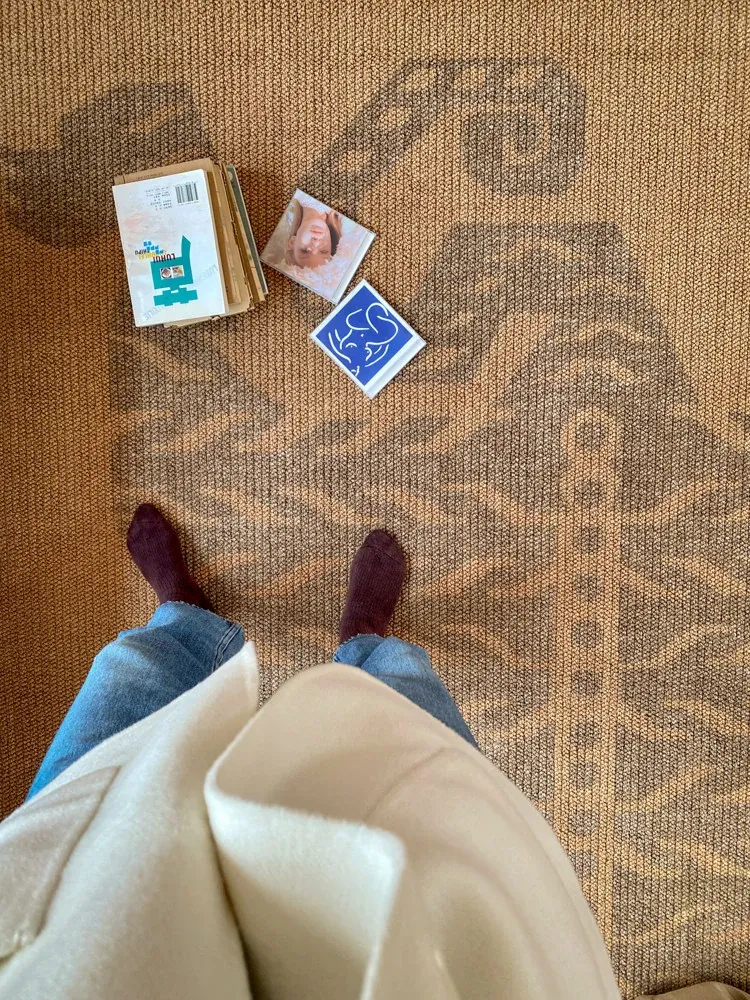 Roknai Vintage Imported Wool Carpet - "Money Everywhere" Design, Perfect for Your Living Room with Hermes-Inspired French Tile Sofa