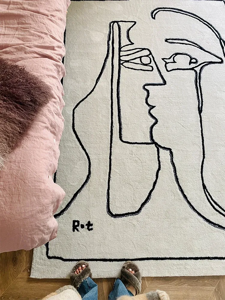 Rona Carpet Picasso Vintage Art Rug - Classic Black and White Line Design for Living Room and Bedroom Decor