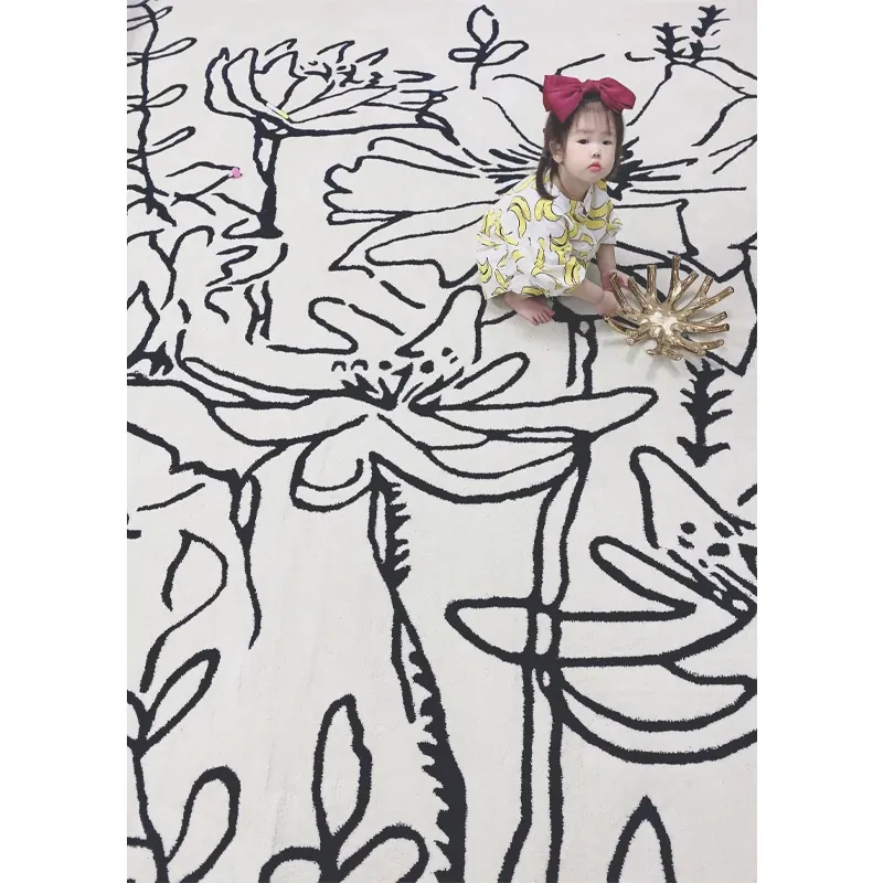 Luxury Handmade Black and White Paris Rug - Spacious Minimalist Design for Living Room, Bedroom, and Closet - Nordic Gray Area Mat for Home Décor