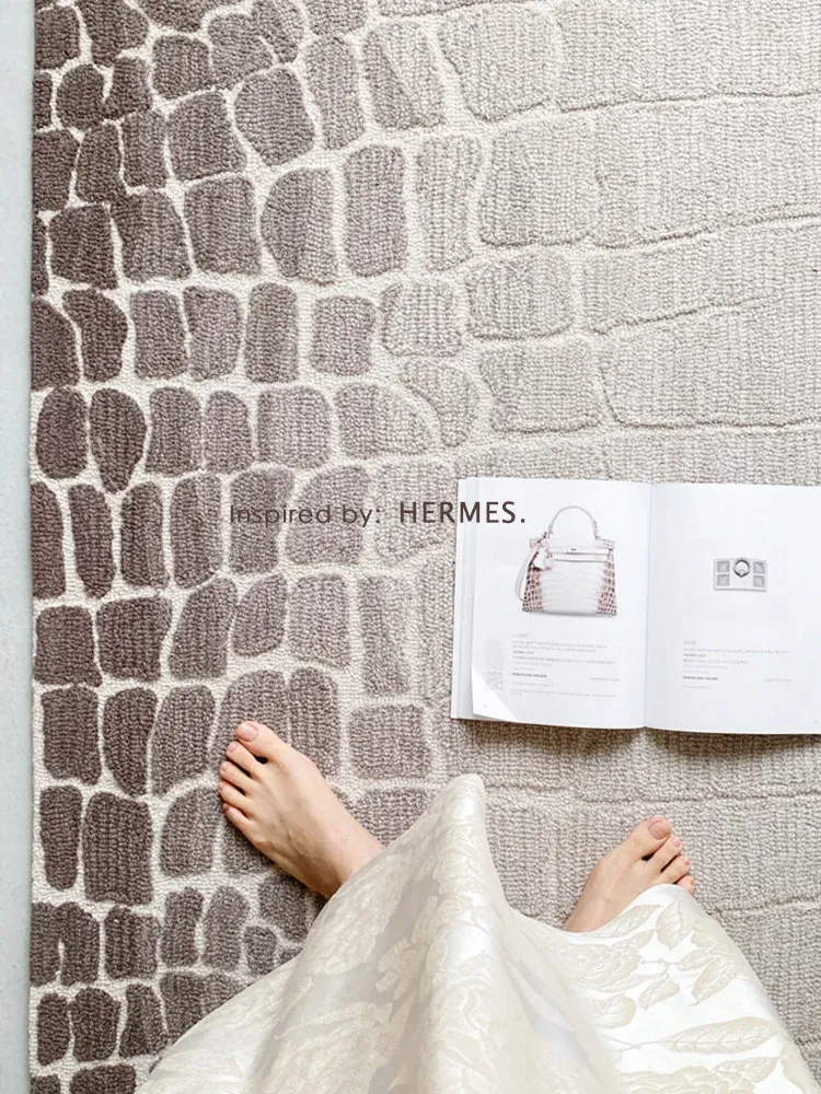 Ruonai HERME* Himalayan Gradient 3D Embossed Wool Carpet - Luxurious Living Room Area Rug for a Chic Modern Aesthetic