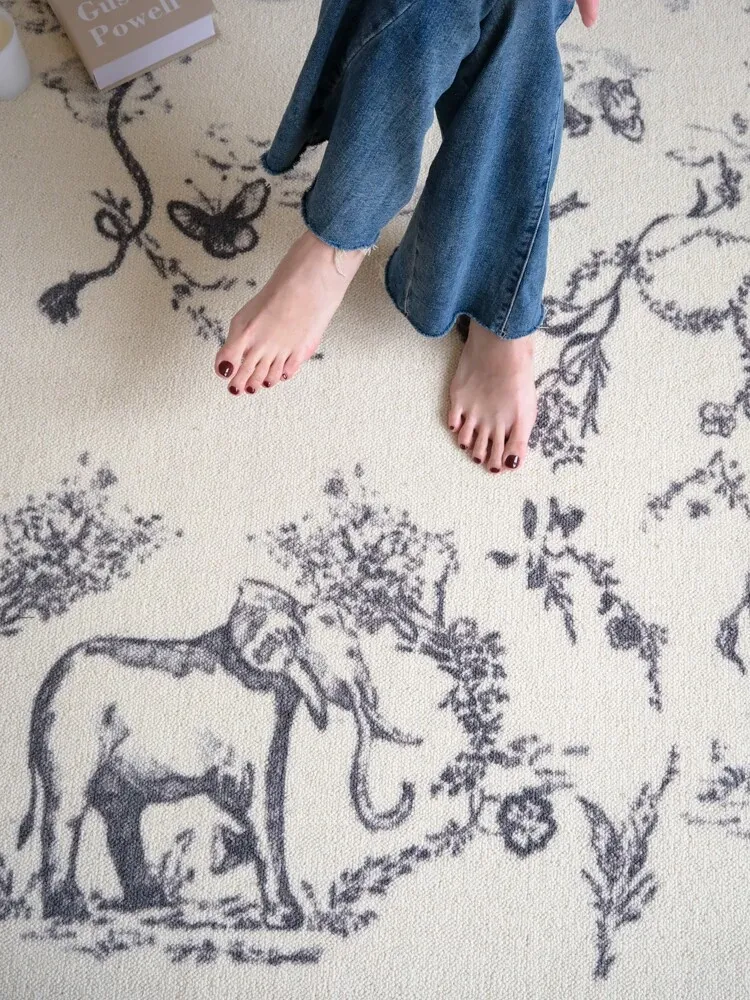 Ruo Nai Di@r Maison Ju Yi Watercolor Imported Wool Area Rug - Cream Color Carpet for Living Room and Bedroom, Perfect for Elevating Your Home Decor