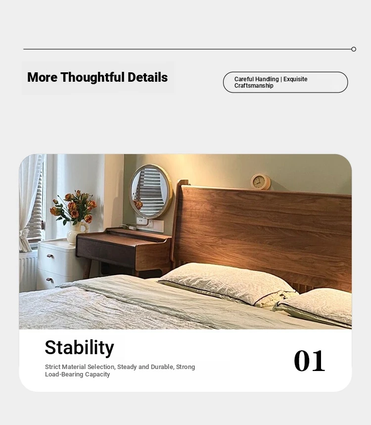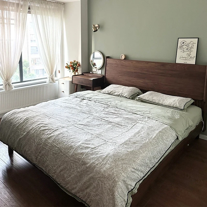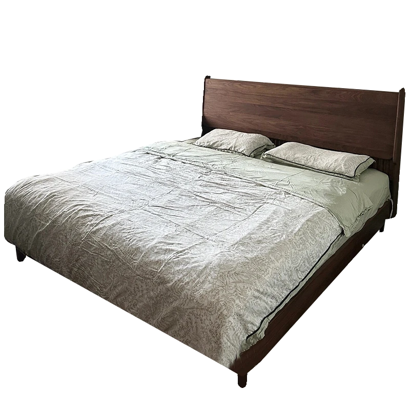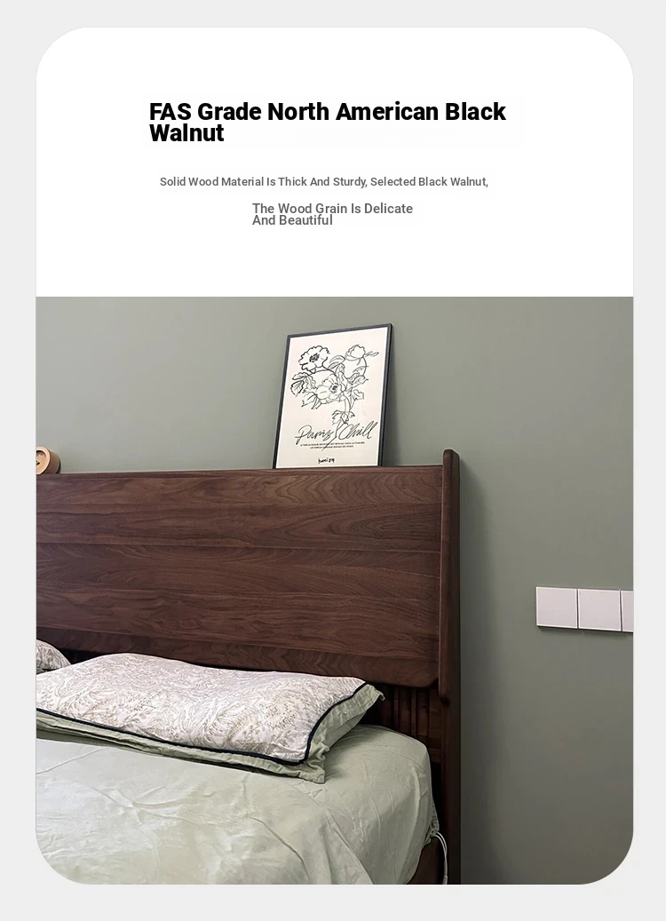 1.8m Solid Wood Double Bed - Modern Minimalist Design for Master Bedroom, 2025 New Walnut Luxury Bed
