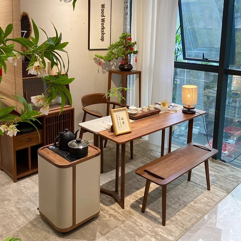 2025 New Arrival: Elegant Walnut Small Tea Table for Balcony - High-End Solid Wood Design, Modern Luxury Feel, Perfect for Cozy Spaces