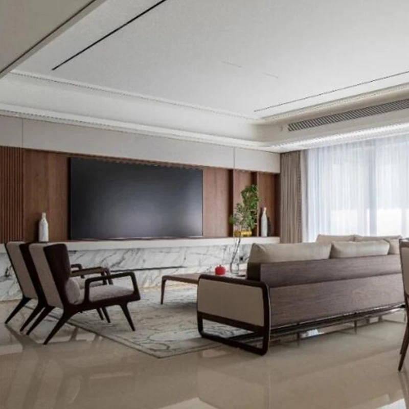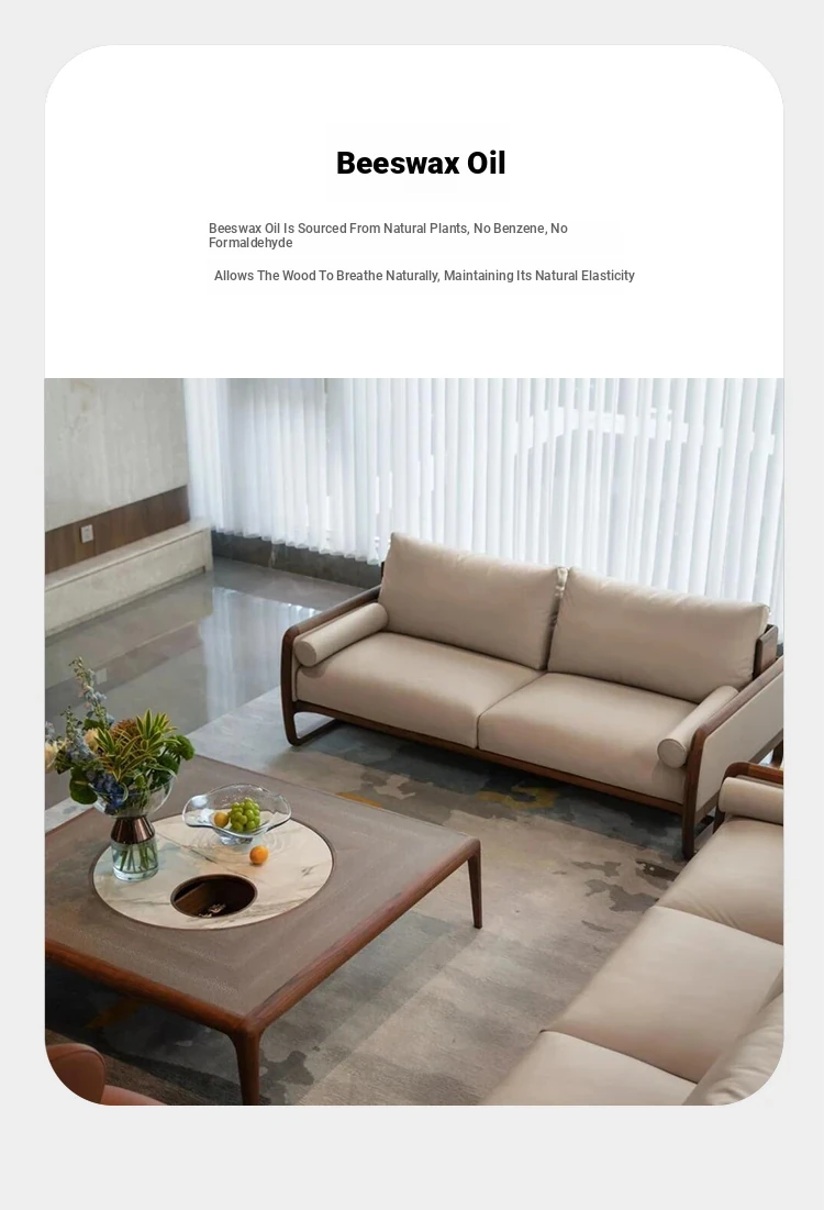 2025 New Arrival Large Leather Sofa for Living Room - Elegant Solid Wood Sofa in Walnut Finish, Perfect for Modern Chinese Style Home and Reception Areas