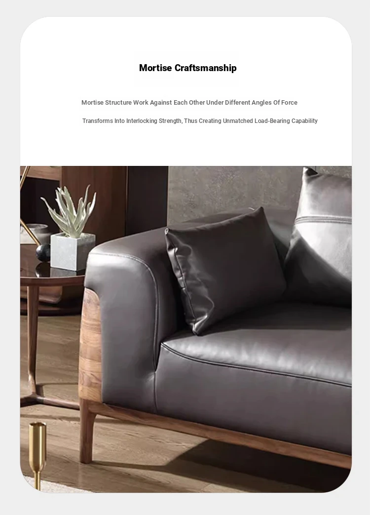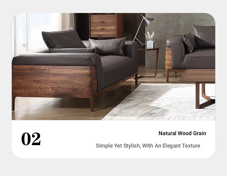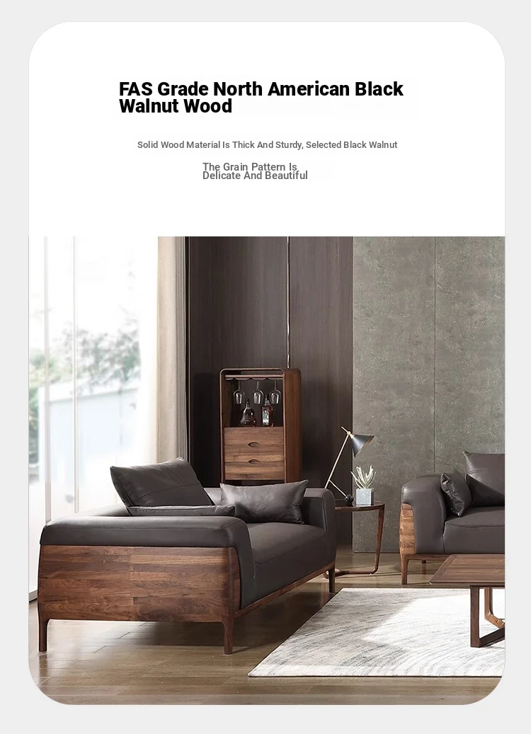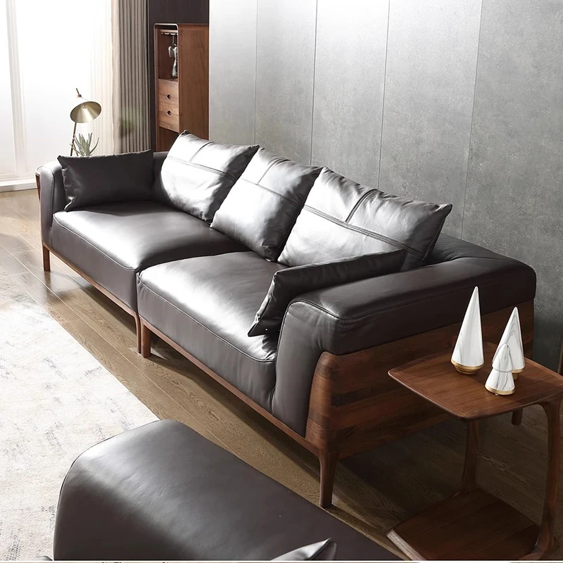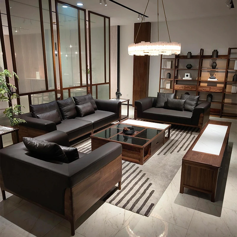 2025 New Arrival Leather Sofa - Elegant Solid Wood Sofa for Living Room, New Chinese Style, Perfect for Office Lounge, Walnut Villa Home Furniture