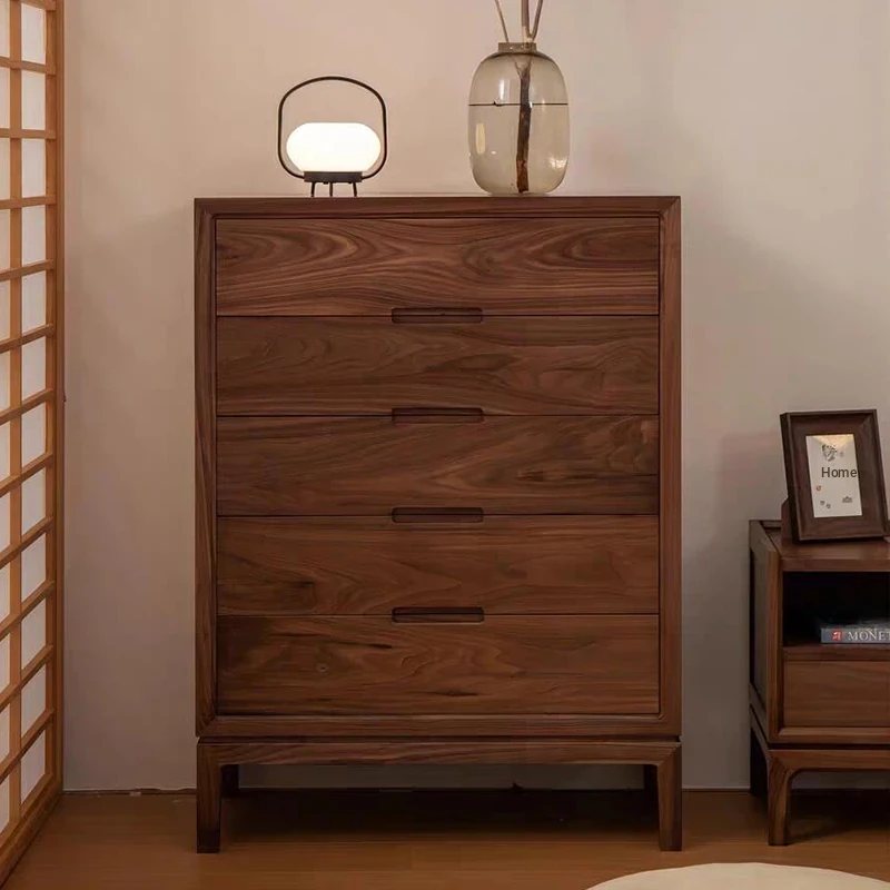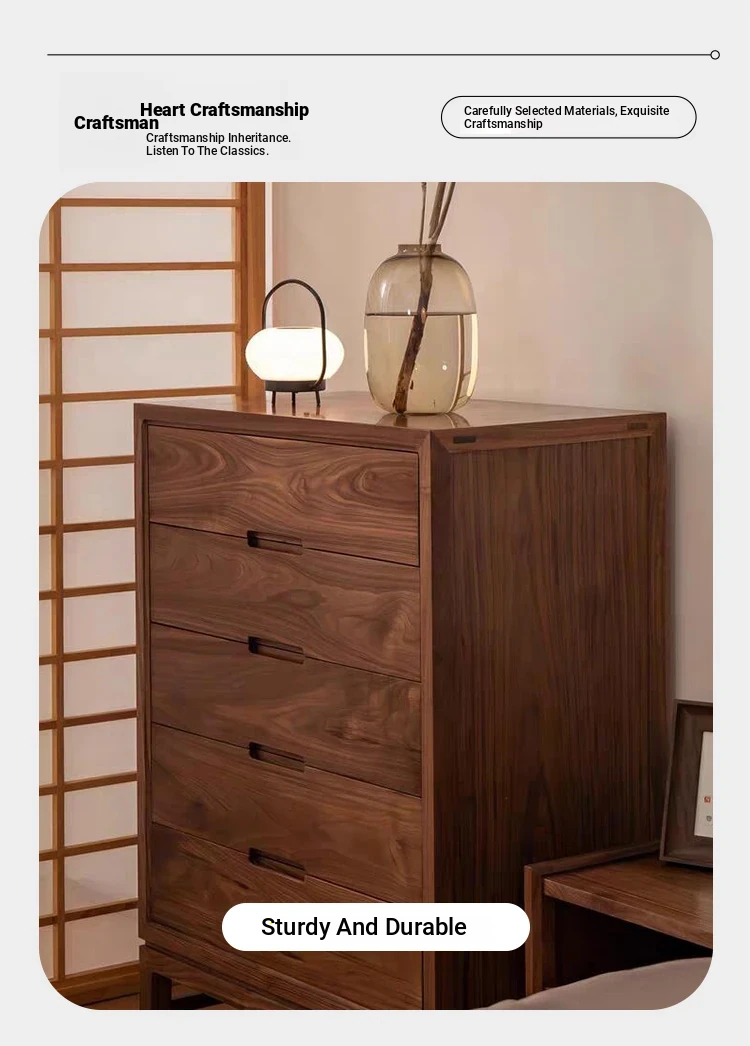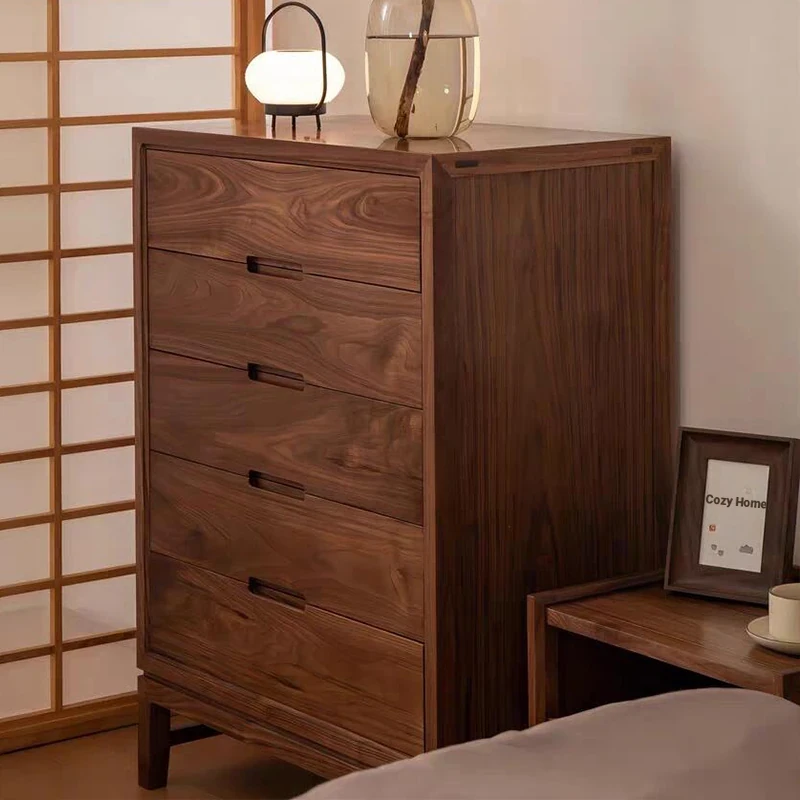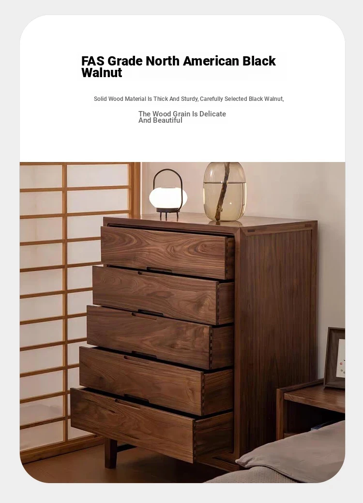 2025 New Arrival: Modern Minimalist Solid Wood Five-Drawer Cabinet – Stylish Nordic Walnut Storage Solution for Your Bedroom