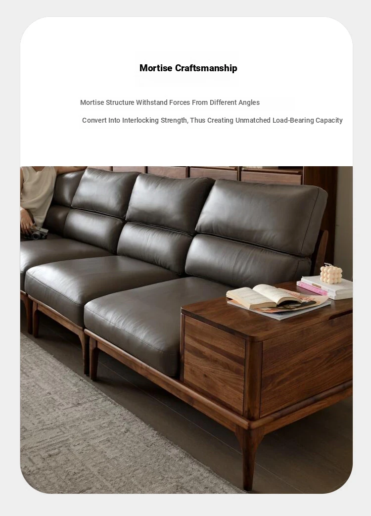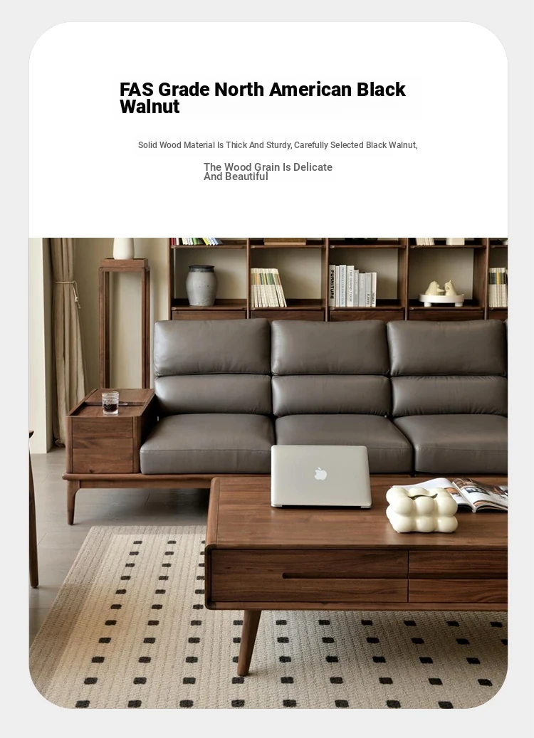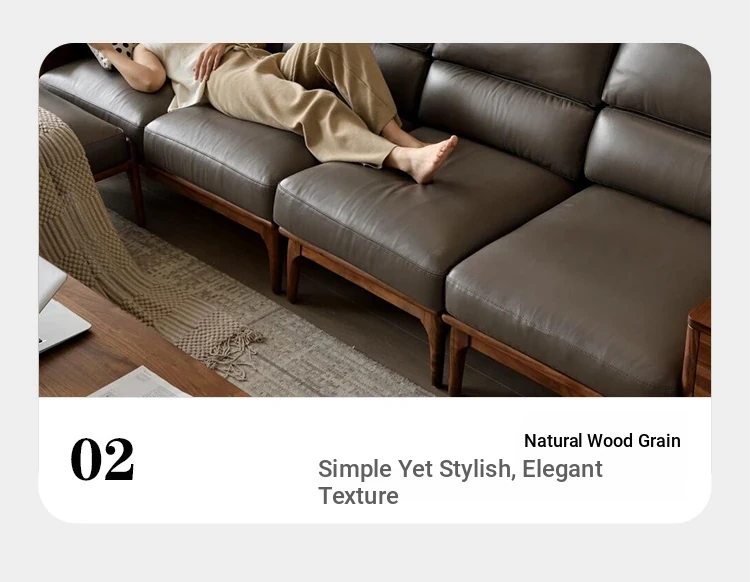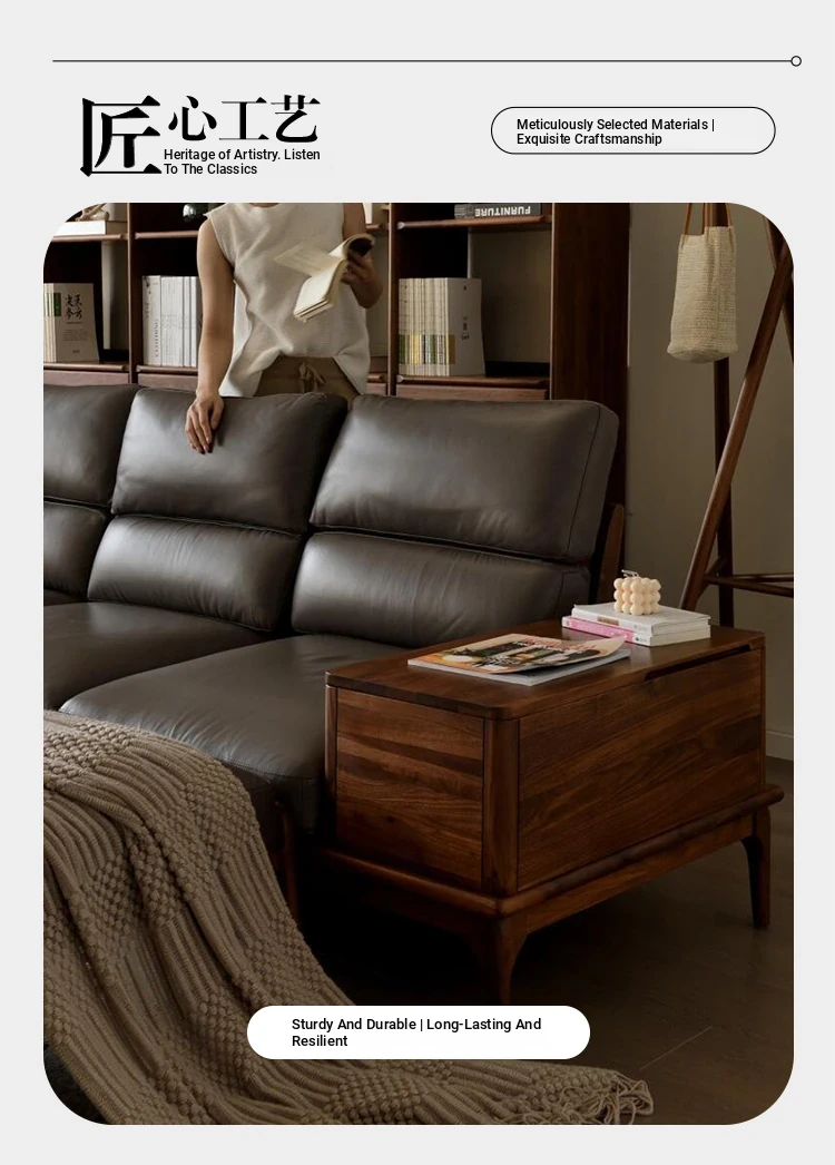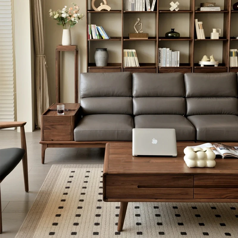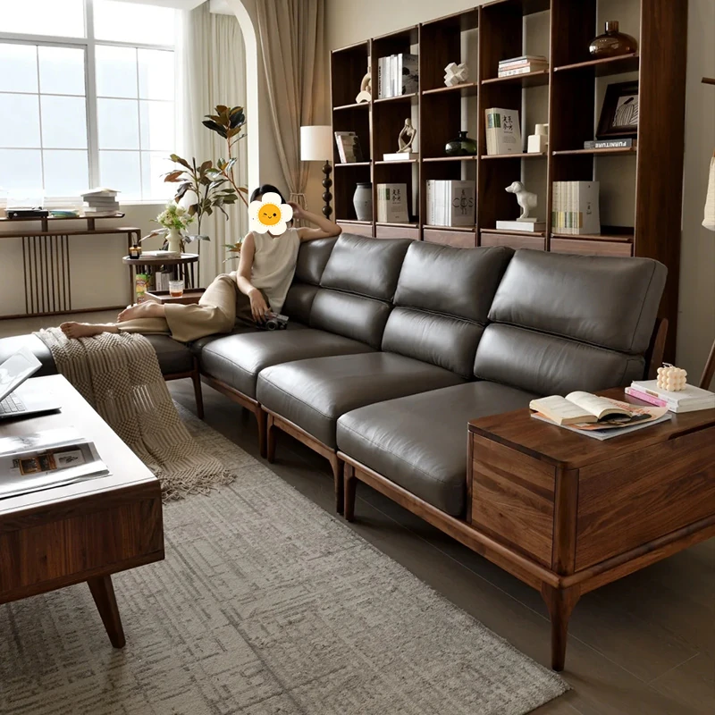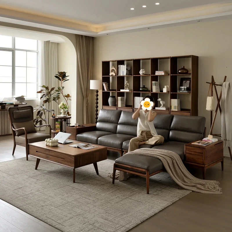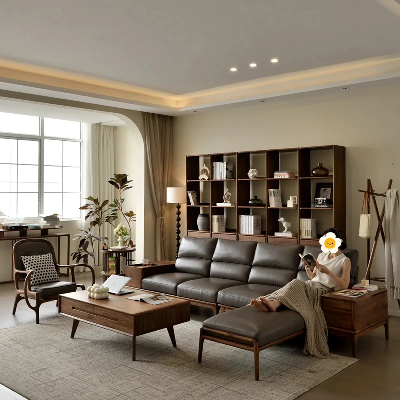 2025 New Chinese Style Large Living Room Sofa for Spacious Homes - Elegant Walnut Wood and Leather Reception Sofa for Villas