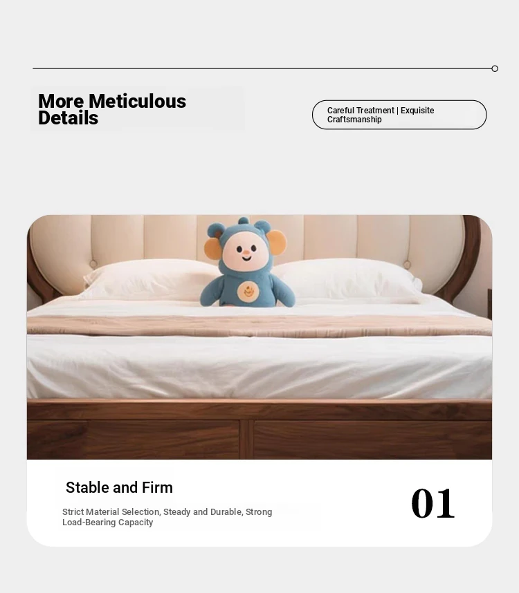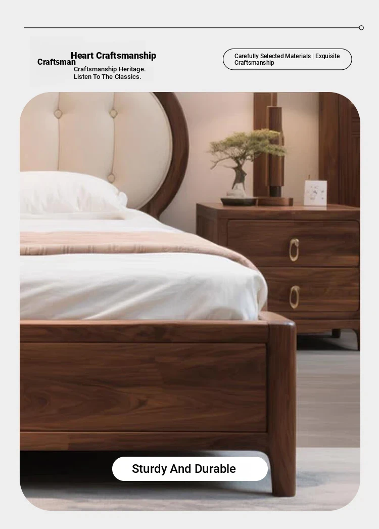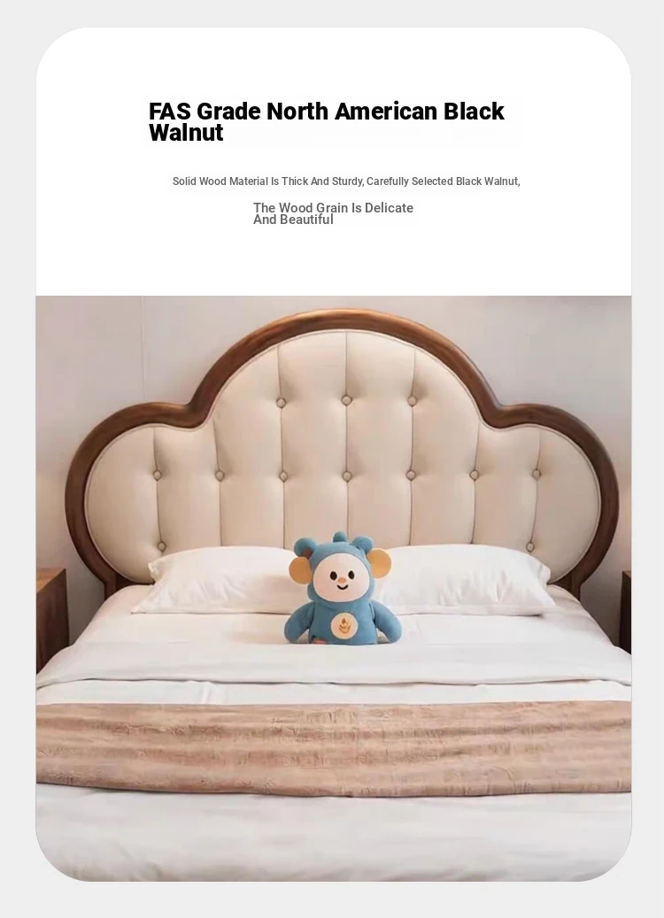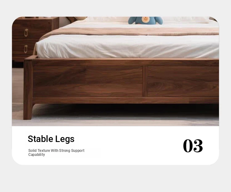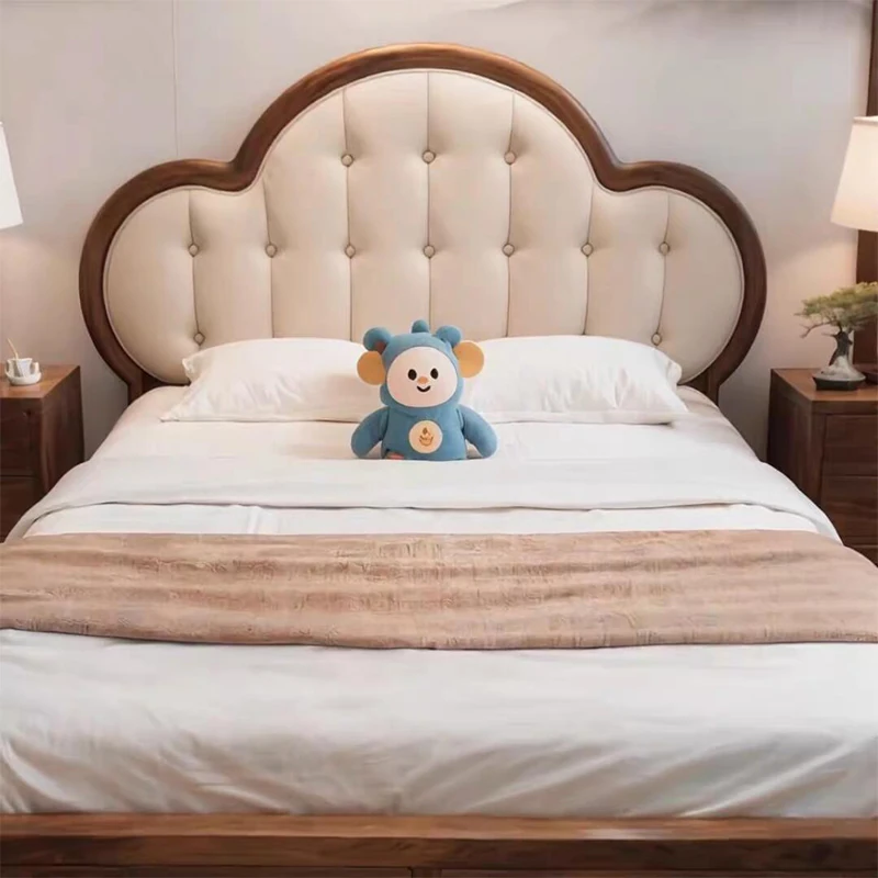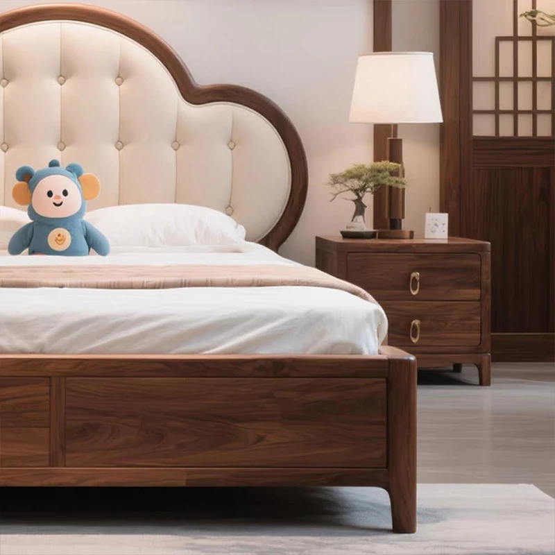 2025 New Chinese Style Solid Wood Bed - Modern Minimalist Luxury Double Bed for Master Bedroom, Walnut Wood with Leather Upholstery, Perfect for Newlyweds