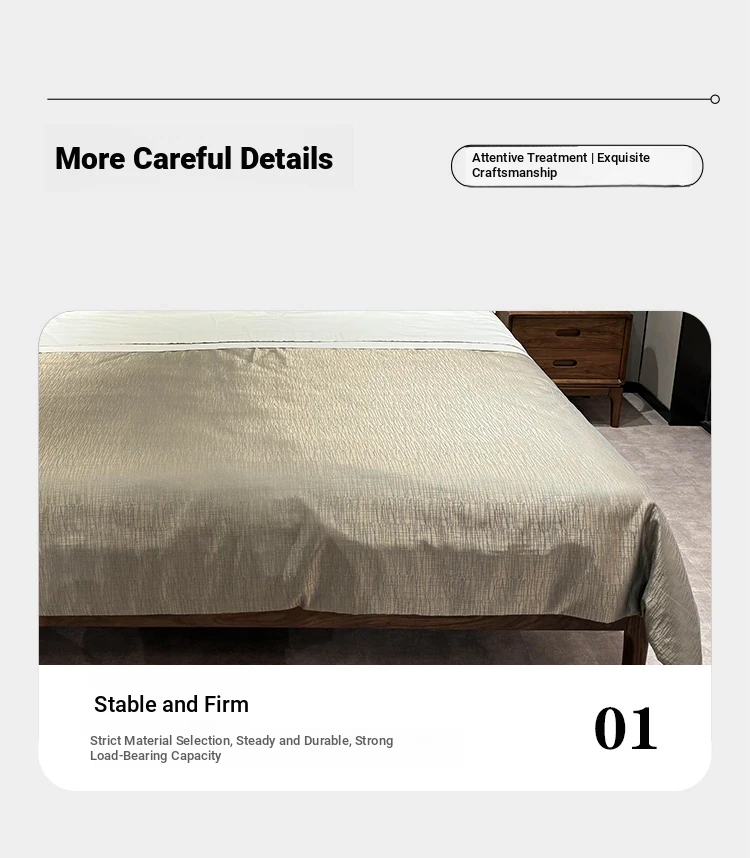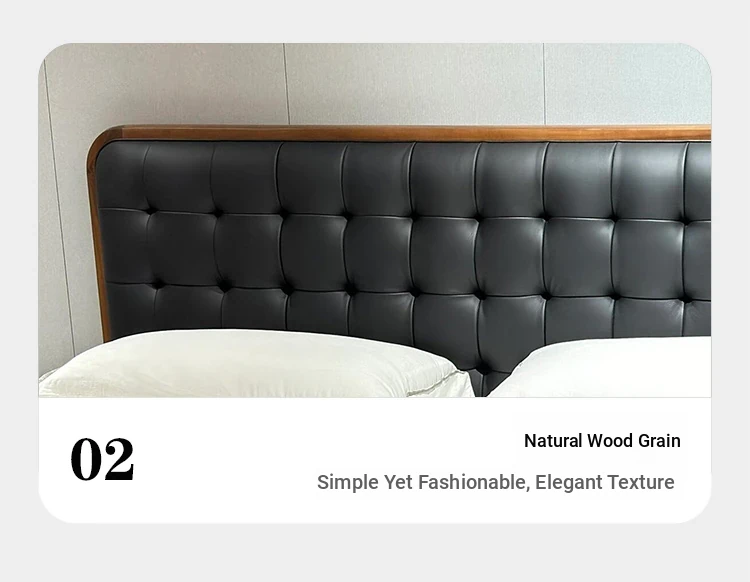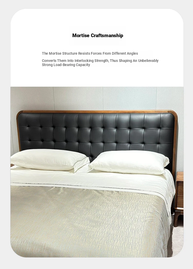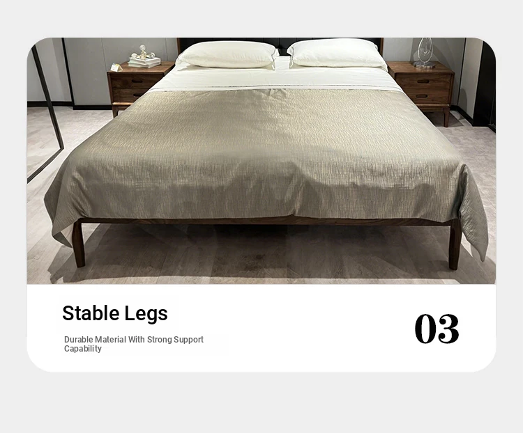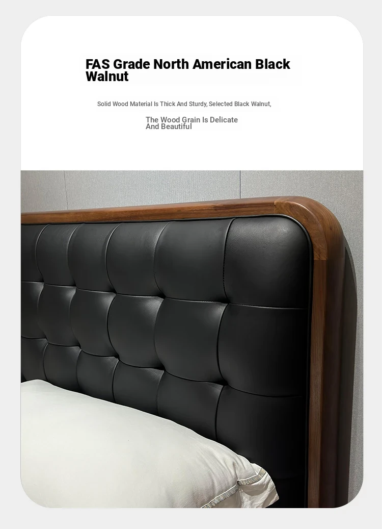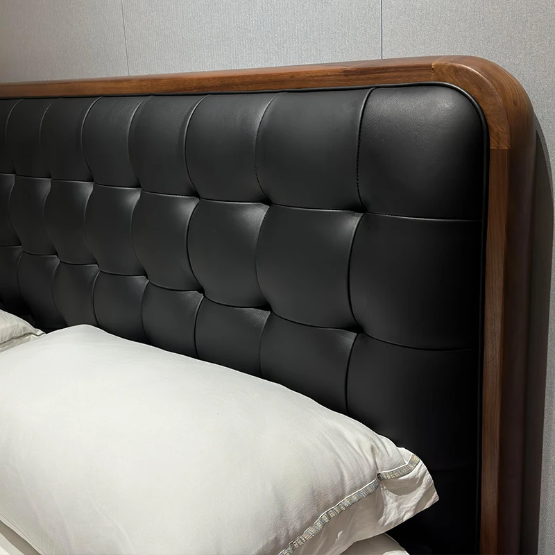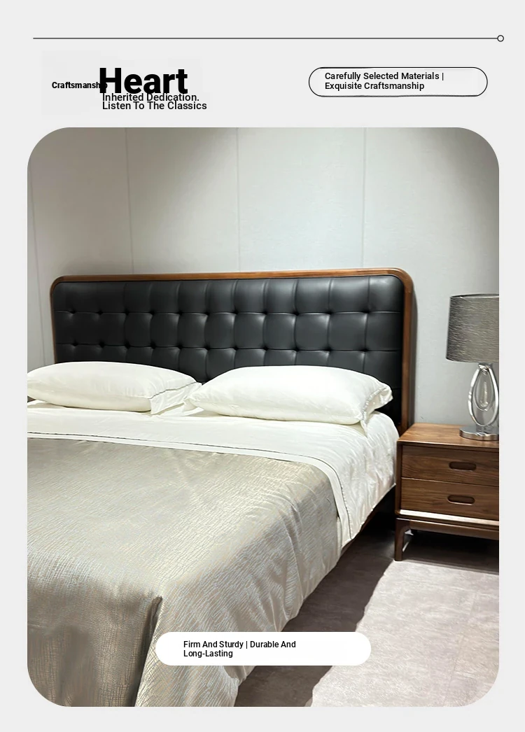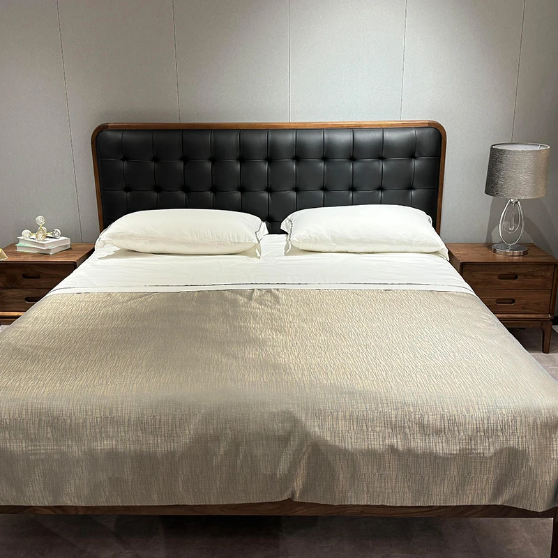 2025 New Chinese Style Solid Wood Bed - Modern Minimalist Upholstered Walnut Double Bed for Master Bedroom, Perfect for Couples' Wedding Room