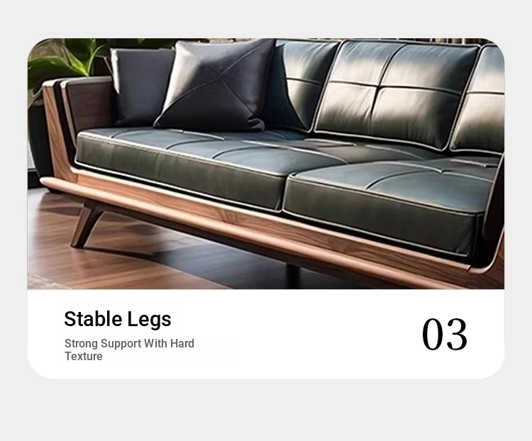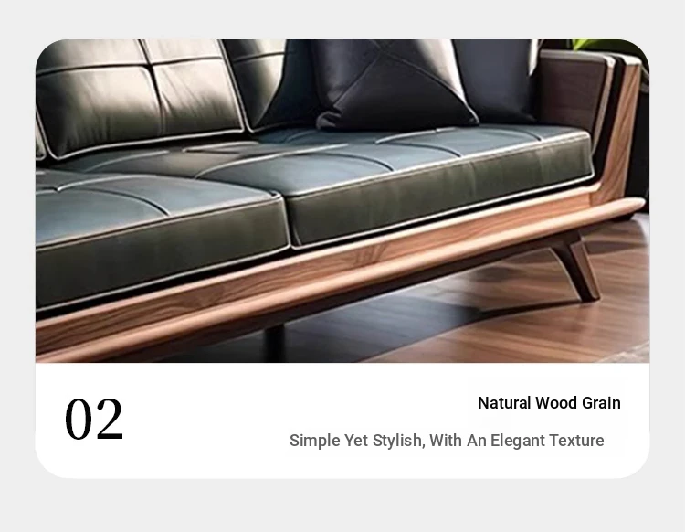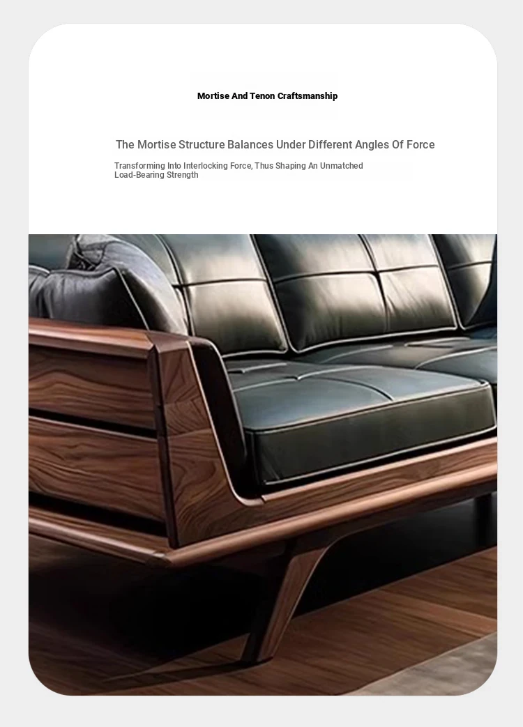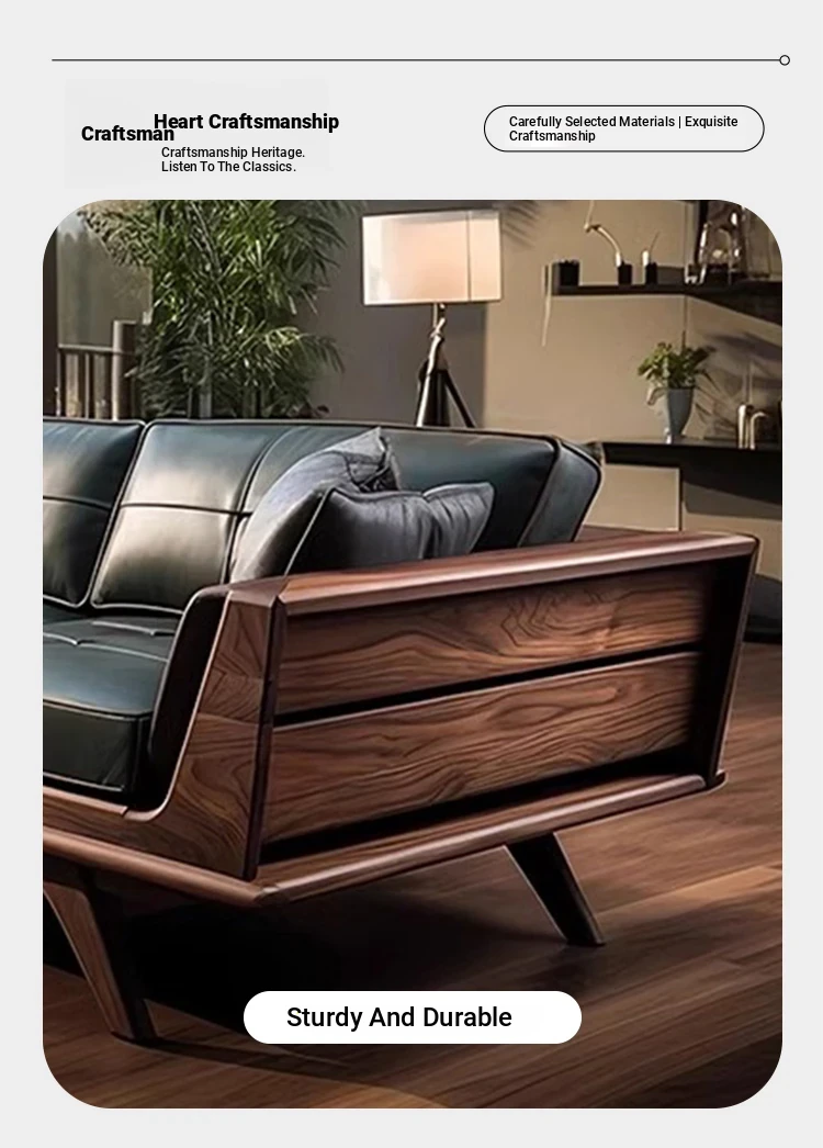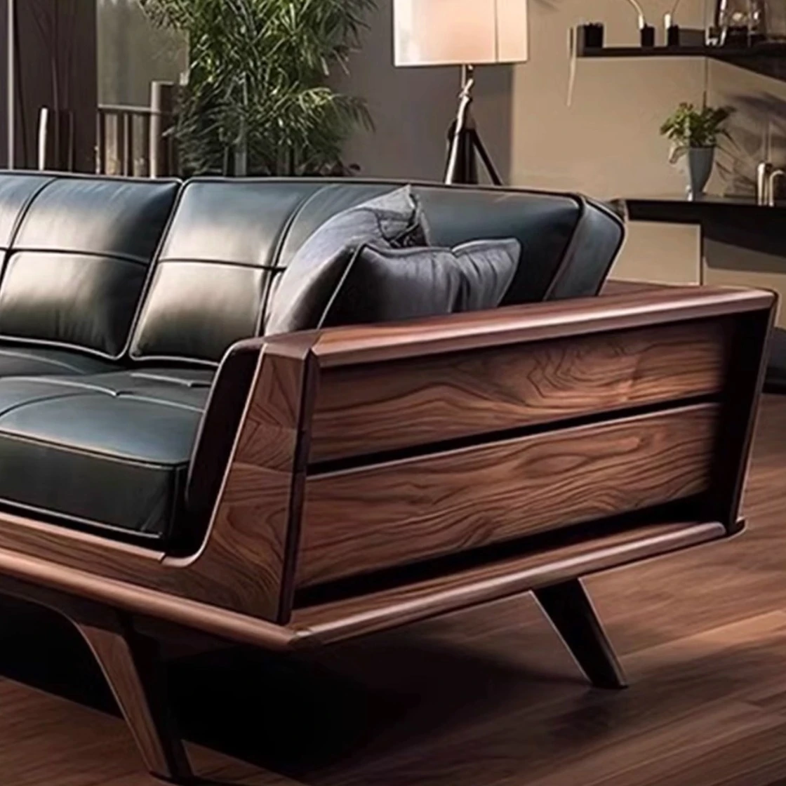 2025 New Chinese Style Solid Wood Leather Sofa - High-End Walnut Three & Four-Seater Living Room Sofa for Luxury Comfort