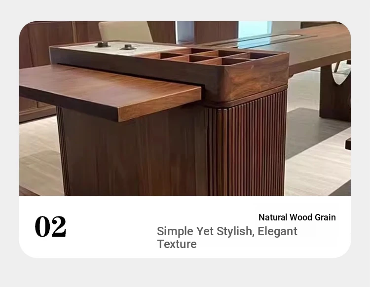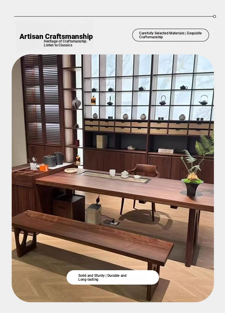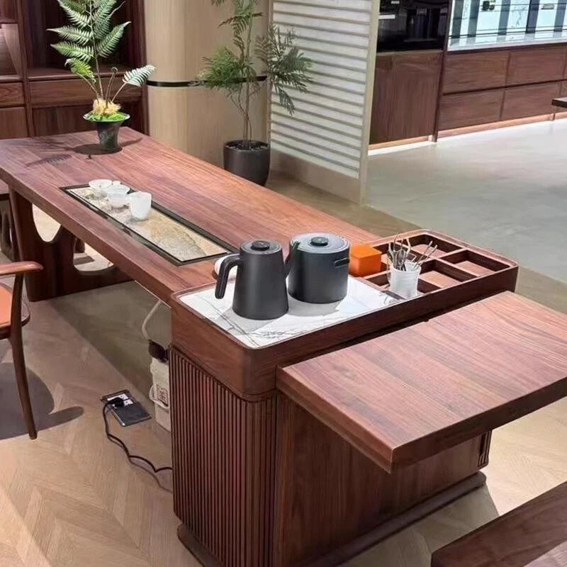 2025 New Chinese Style Solid Wood Luxury Tea Table - Modern Minimalist Walnut Tea Station for Home Living Room, Perfect for Elegant Gatherings