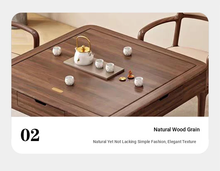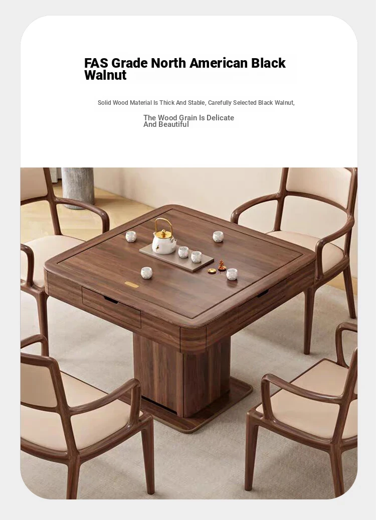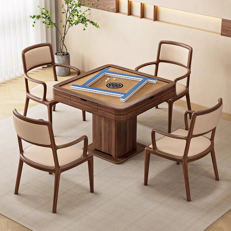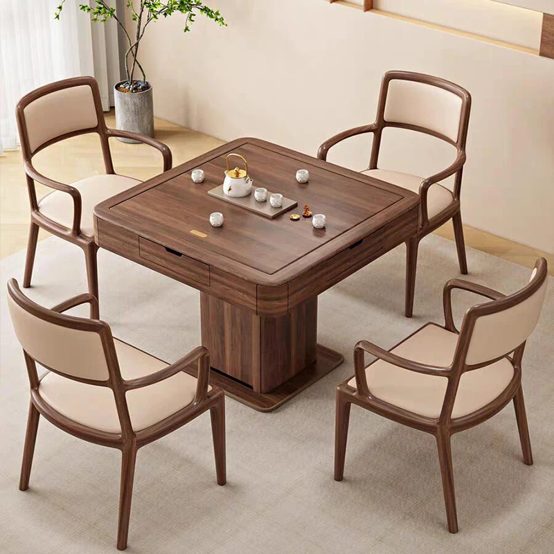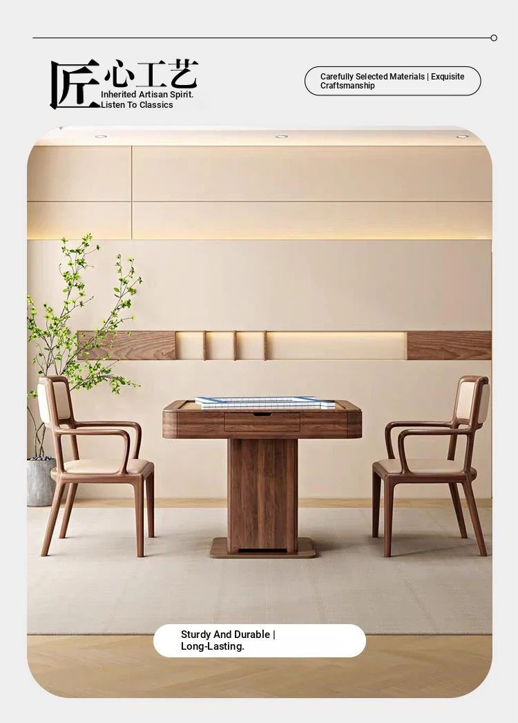 2025 New Chinese Style Solid Wood Mahjong Table - Modern Minimalist Luxury Home Dining Table in Walnut Square Design