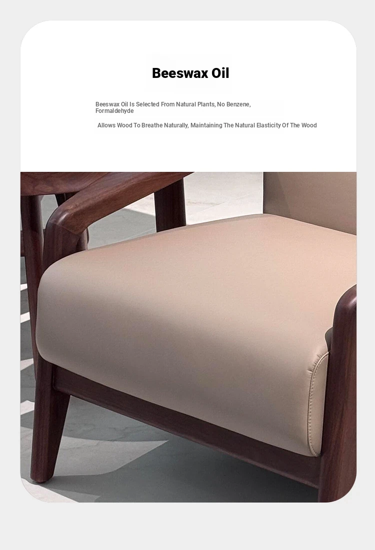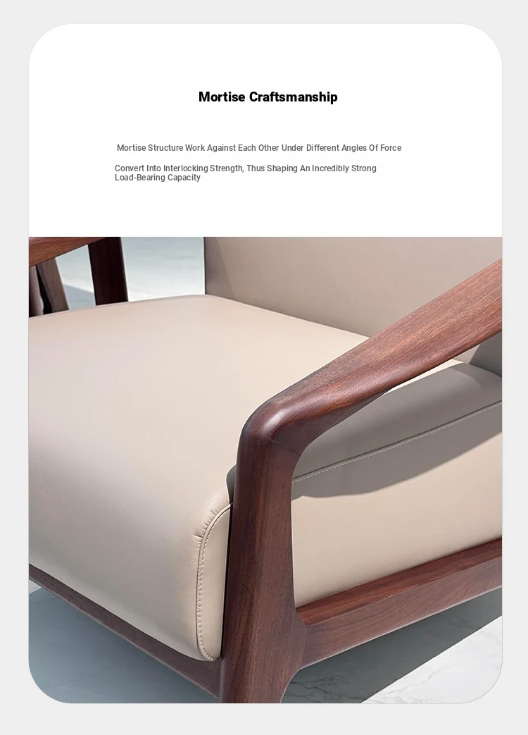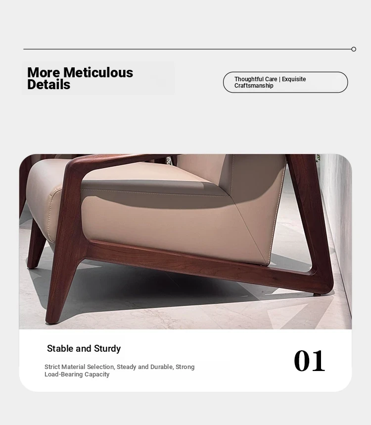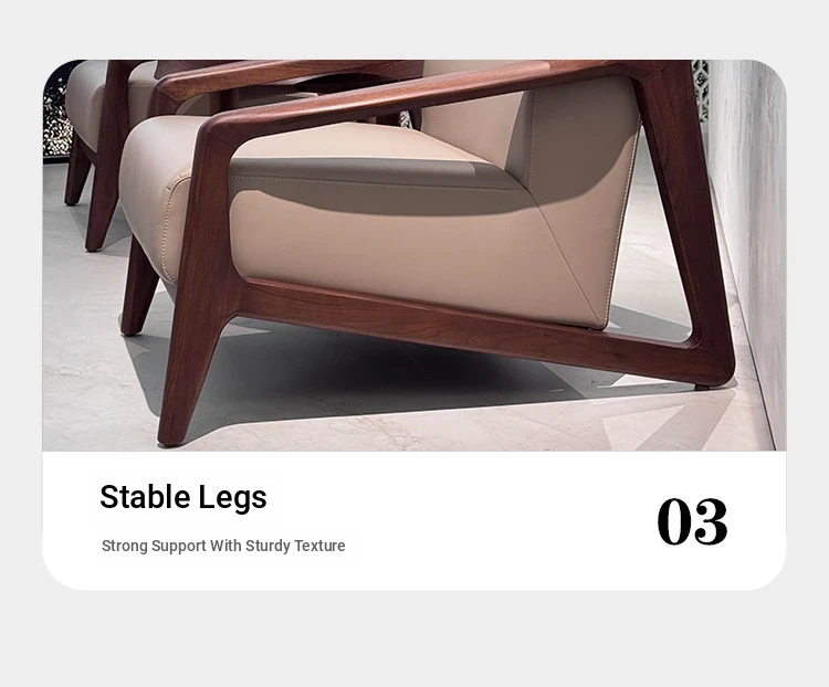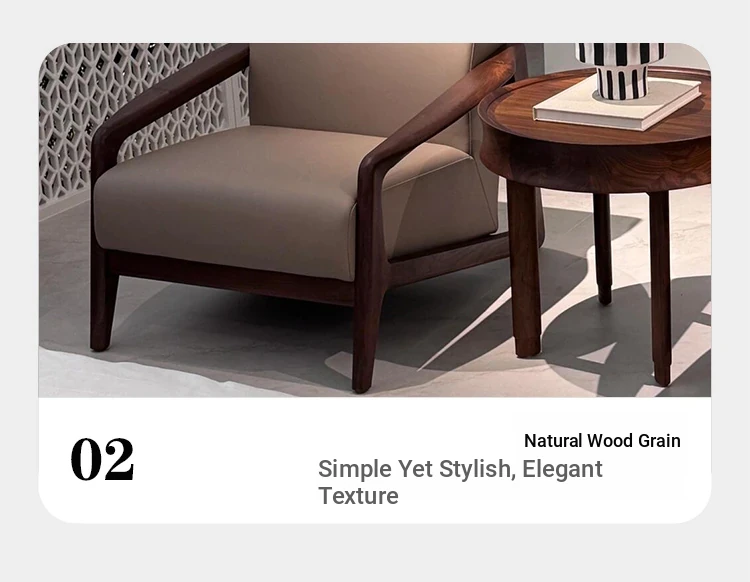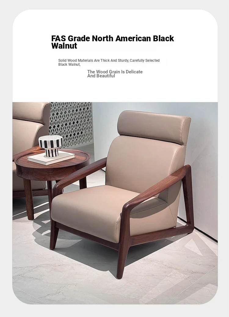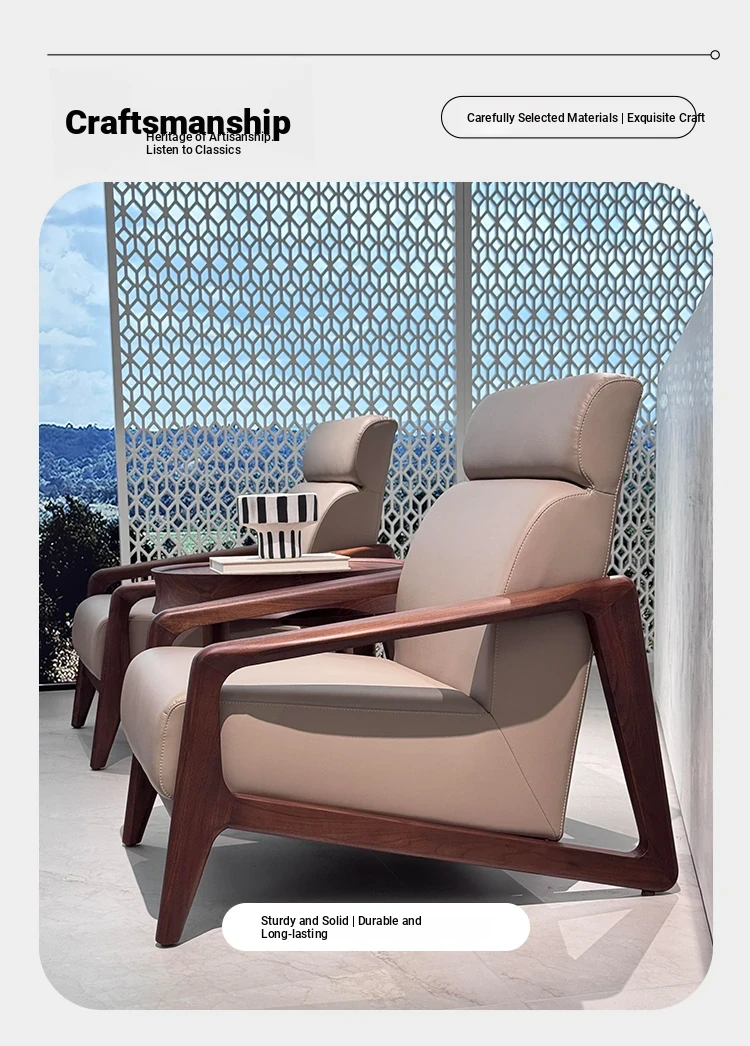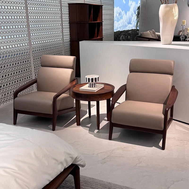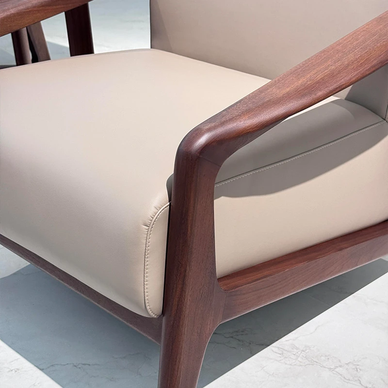 2025 New Chinese Style Solid Wood Sofa Chair - Modern Minimalist Walnut Wood Leisure Chair with Leather Upholstery for Home Living Room