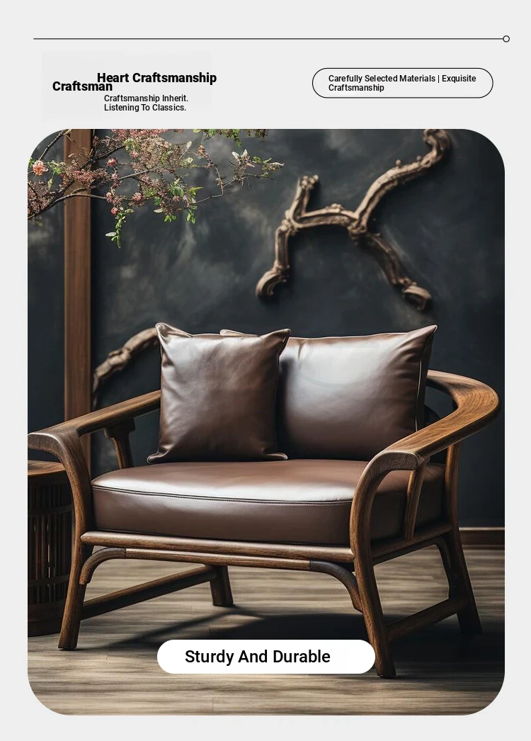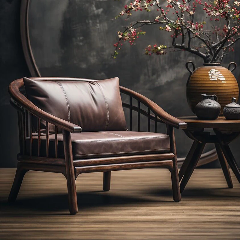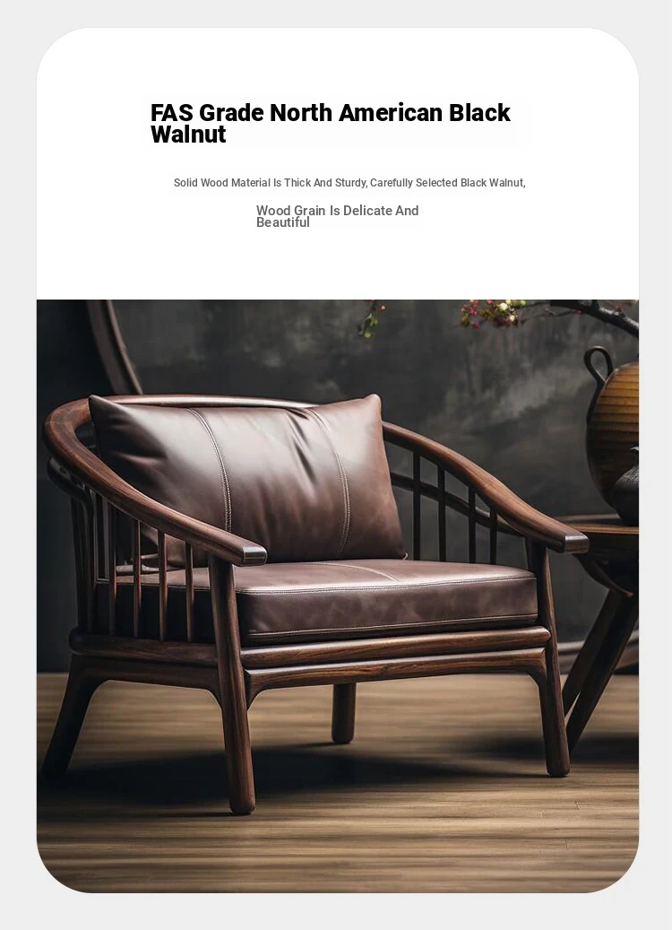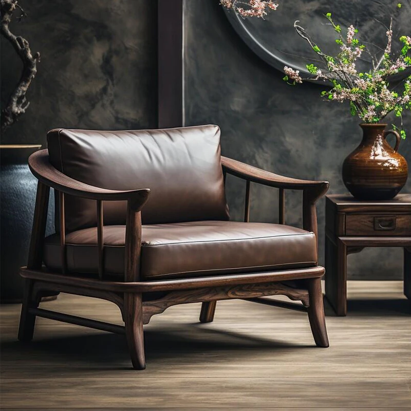 2025 New Chinese Style Solid Wood Sofa Chair - Premium Walnut Light Luxury Home Living Room Vintage Leisure Chair